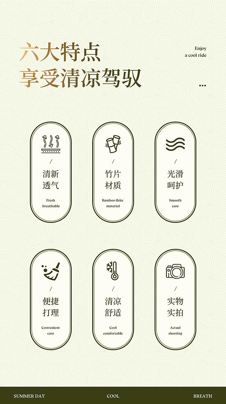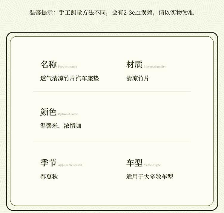 2025 nuevo cojín de asiento de coche de bambú de verano de varias piezas de tres piezas hoja verde