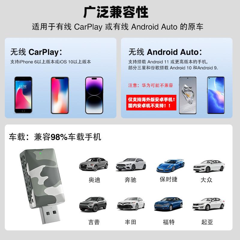 Ventas Calientes Transfronterizas Adaptador Caja 2 en 1 Carplay Coche Original Alámbrico a Inalámbrico Apple Car Inalámbrico