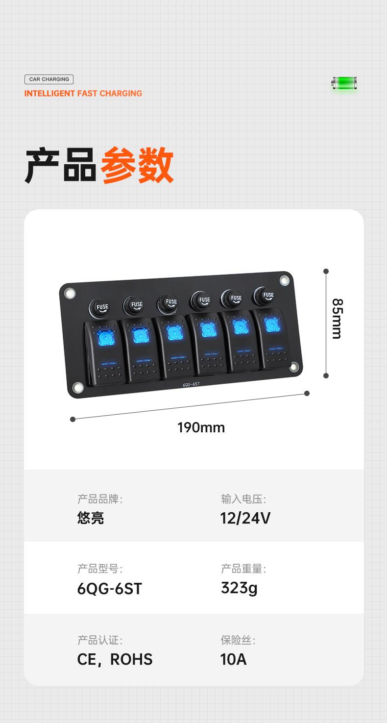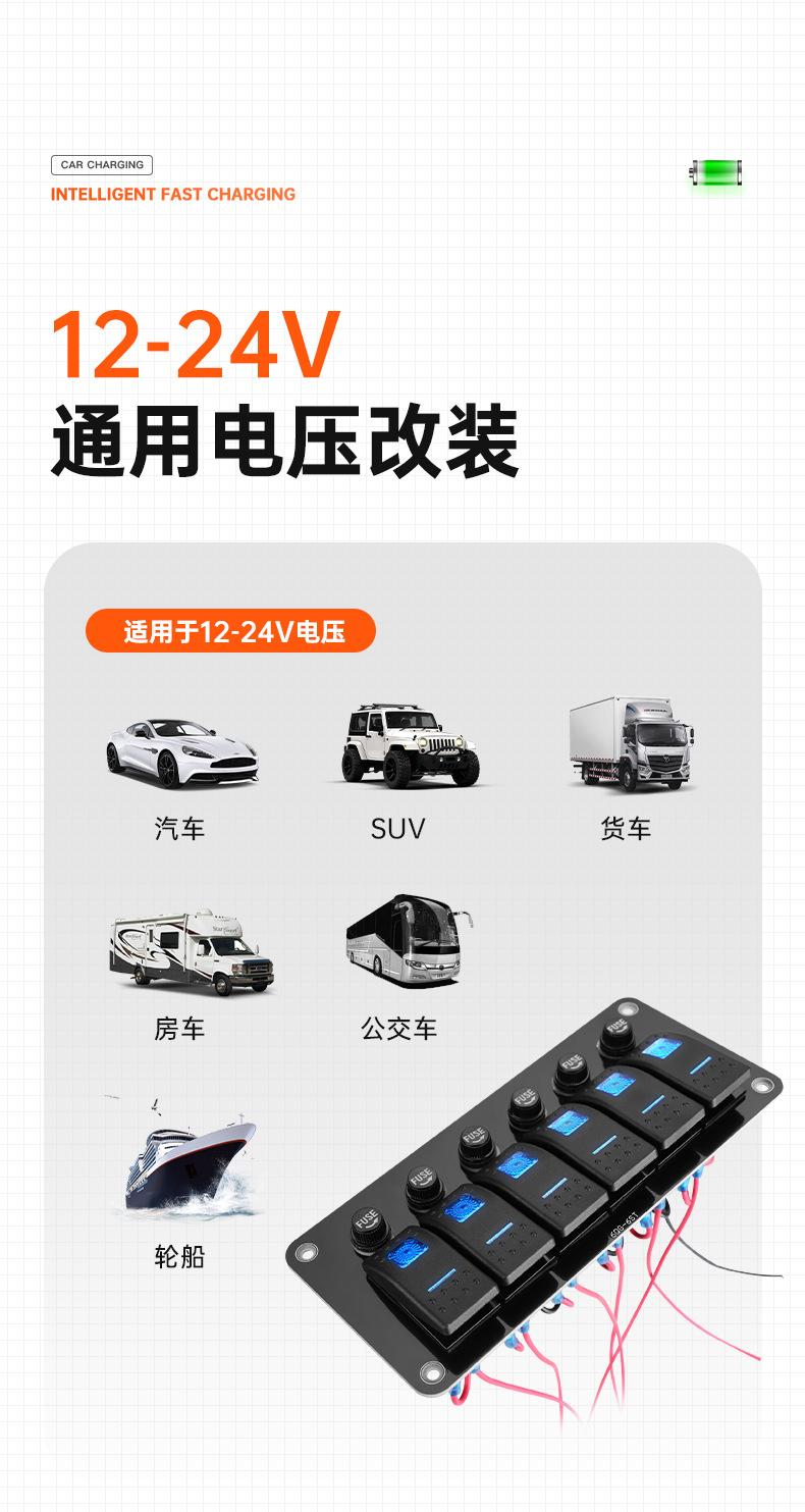 Interruptor basculante universal modificado de 12-24 V para barco, yate, RV, con controlador de panel de control de 6 dígitos
