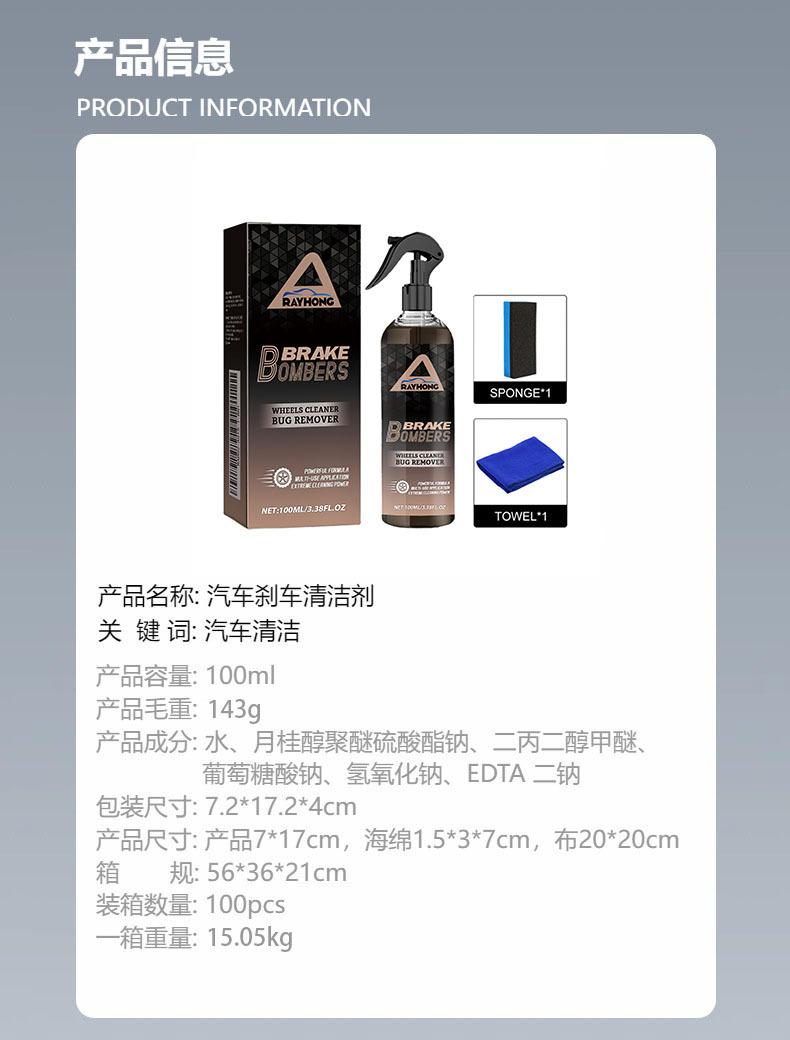 Limpiador de frenos de coche Rayhong, eliminador de óxido de discos de freno de coche, agente pulidor de ruedas, limpiador de ruidos anormales