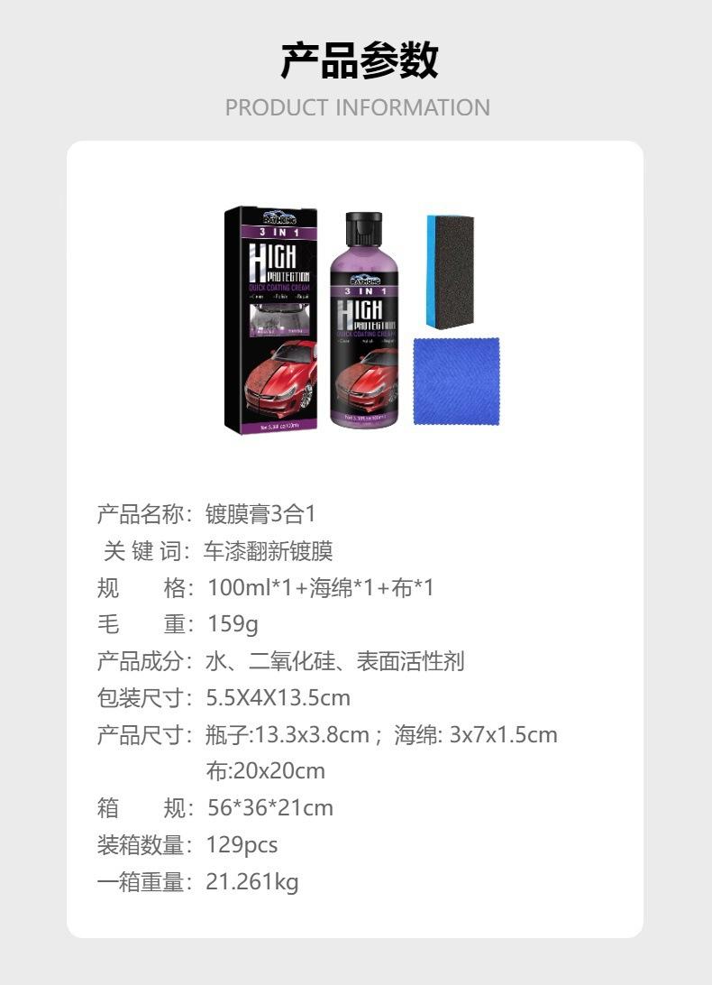Pasta de recubrimiento Rayhong 3 en 1, limpiador de automóviles, descontaminación, reparación de arañazos, pintura de automóvil multifuncional, revestimiento restaurado, artefacto