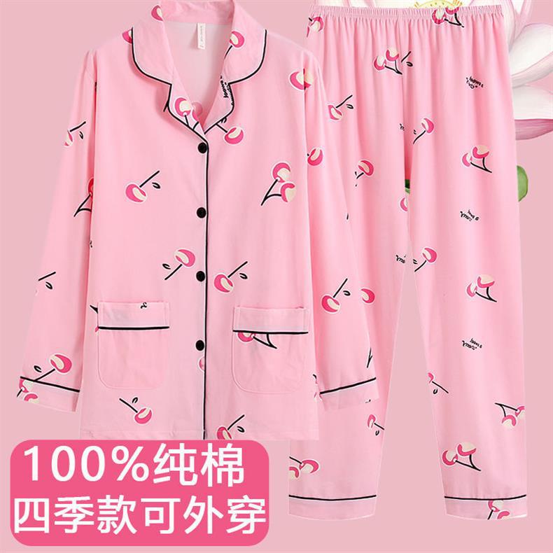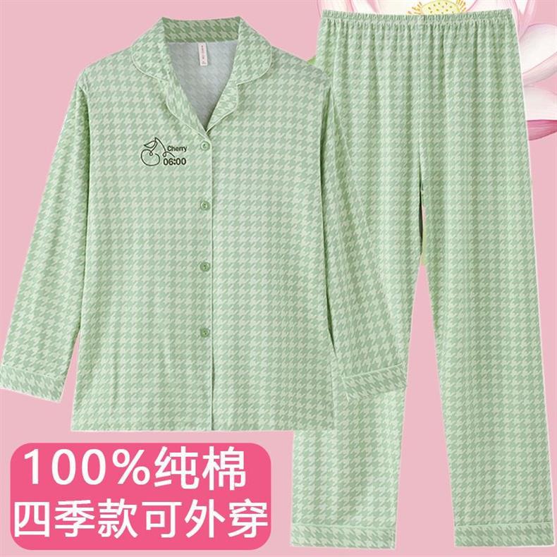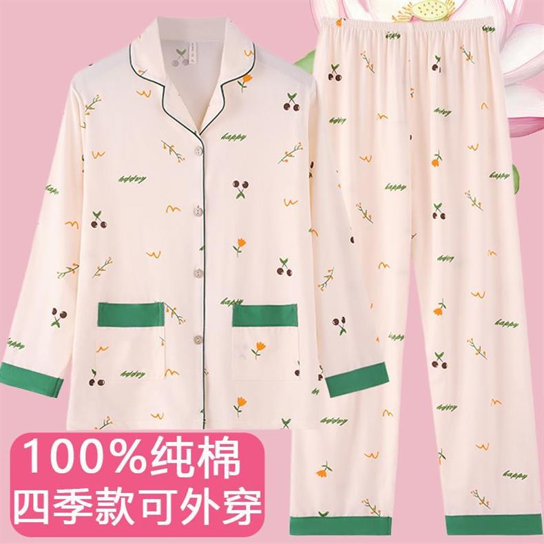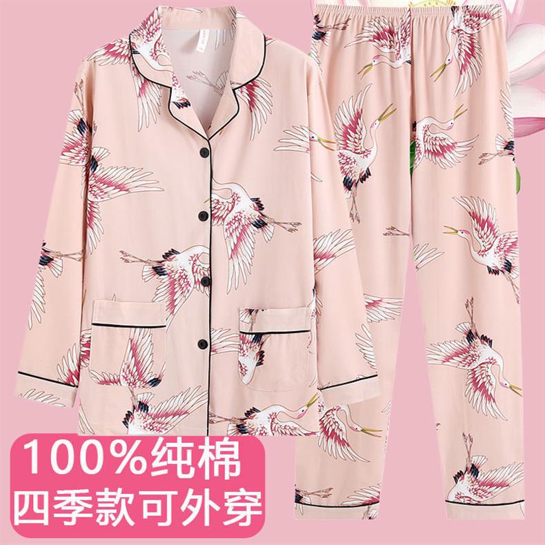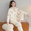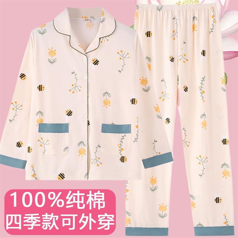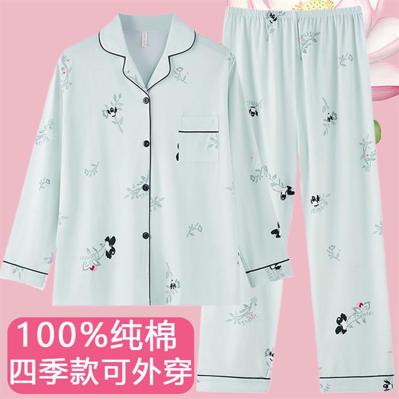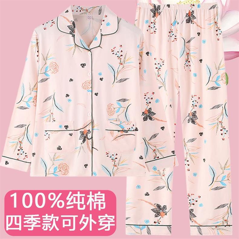 Pijama de algodón para mujer, primavera y otoño, nuevo, de manga larga, de algodón, para el hogar, cárdigan, traje de dos piezas