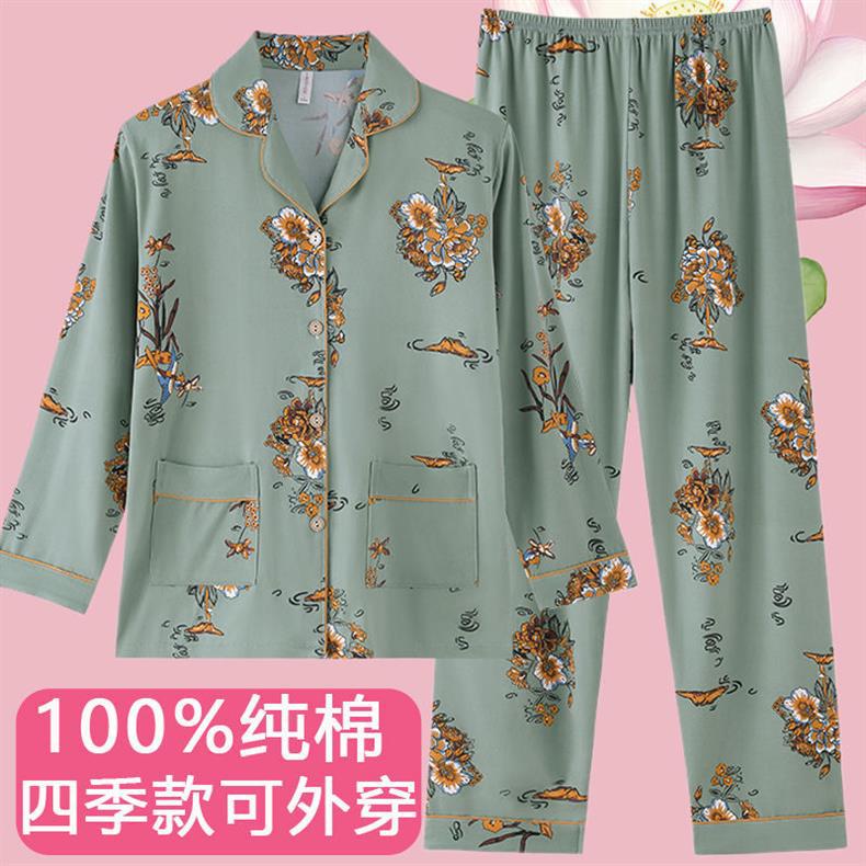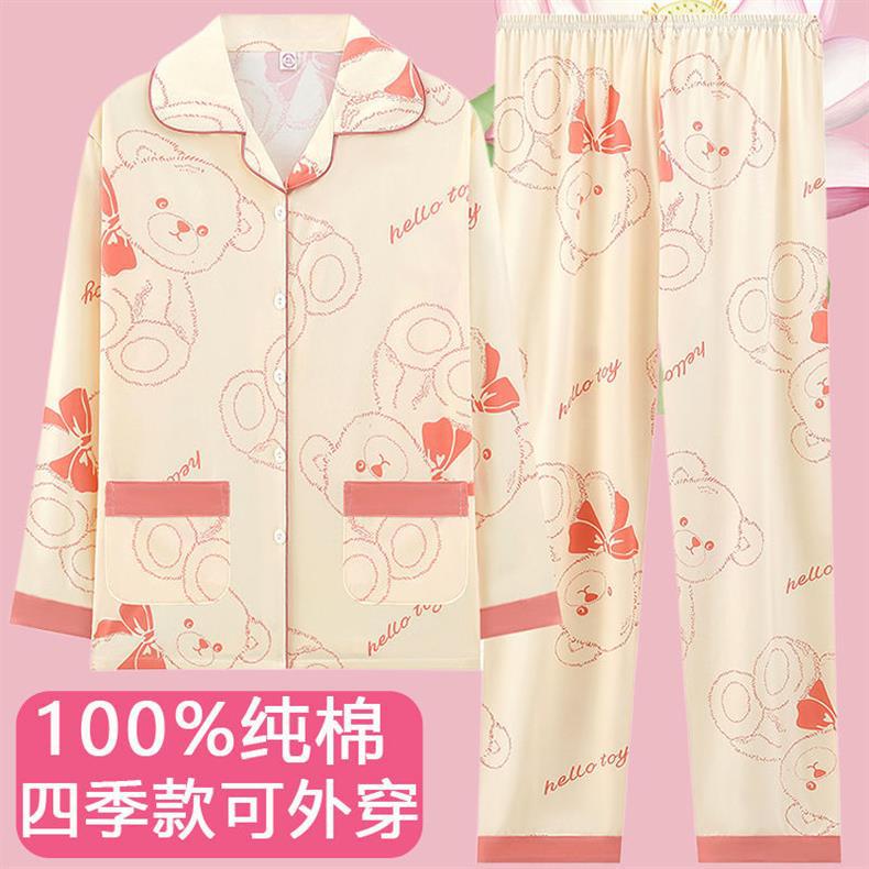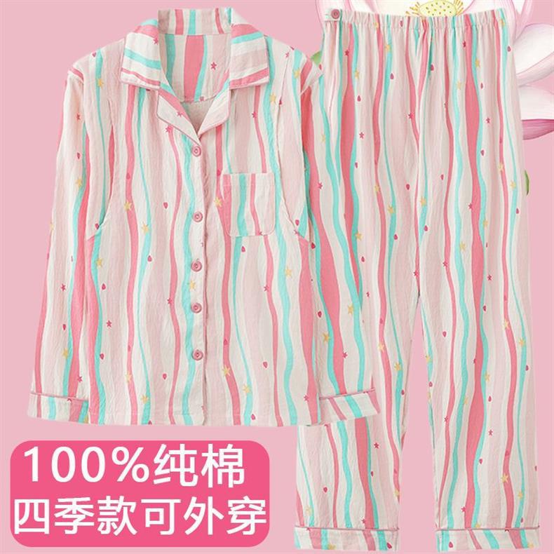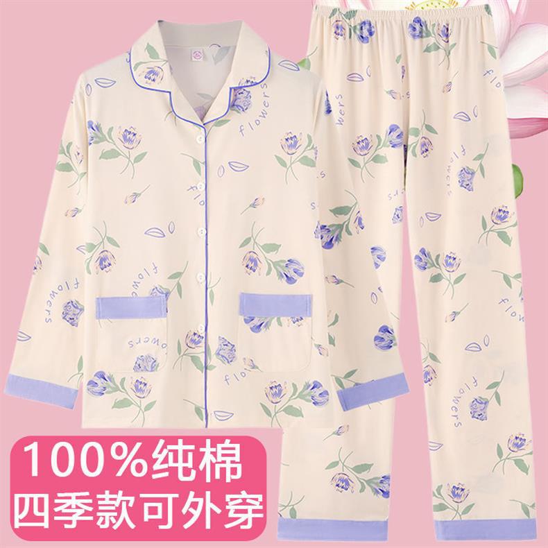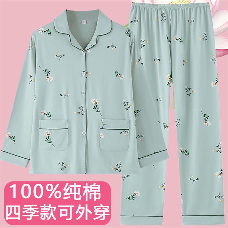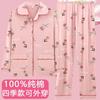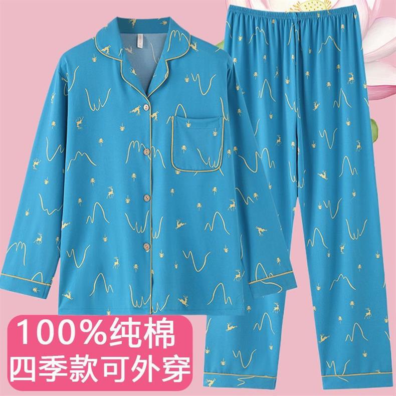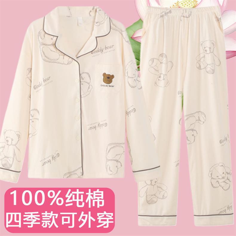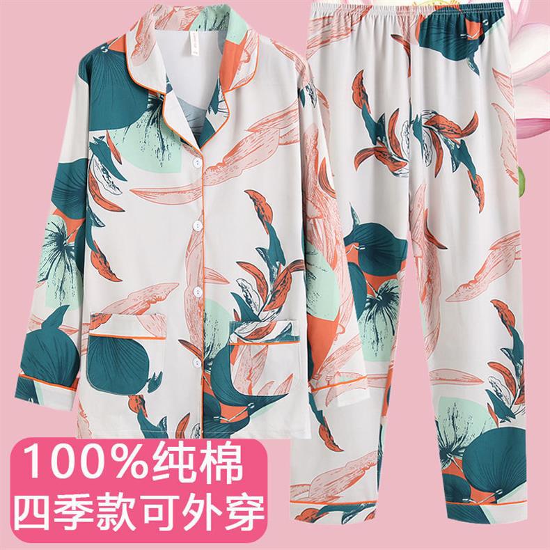 Pijama de algodón para mujer, primavera y otoño, nuevo, de manga larga, de algodón, para el hogar, cárdigan, traje de dos piezas