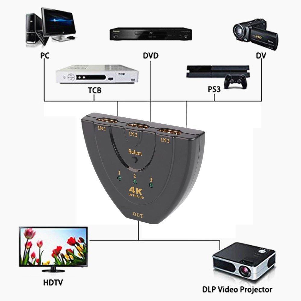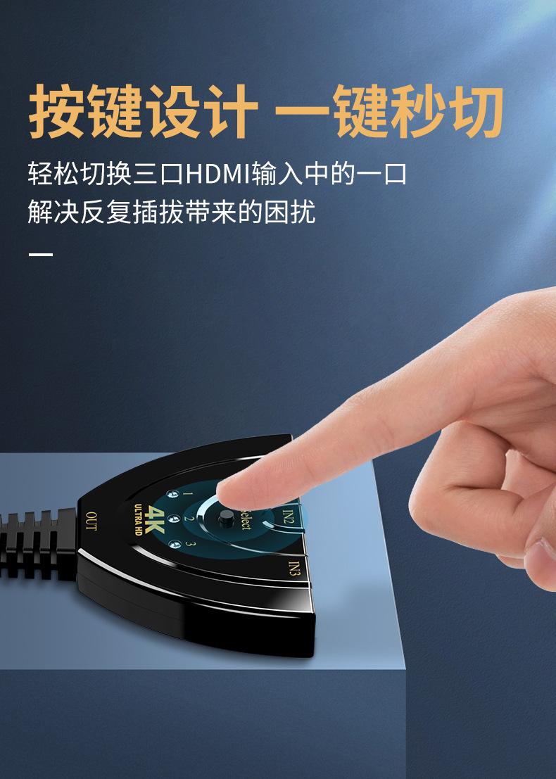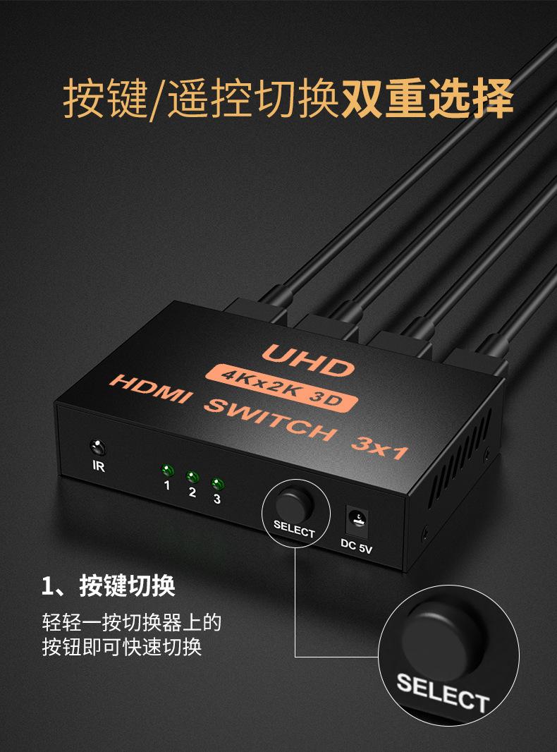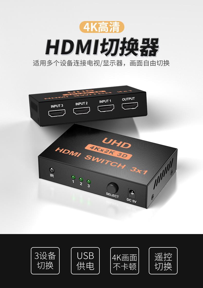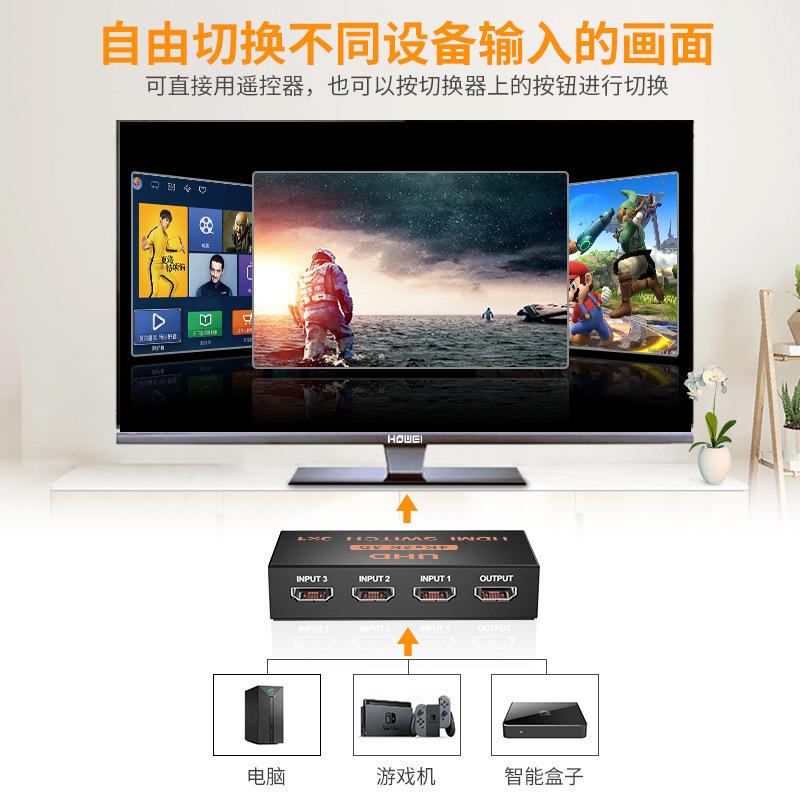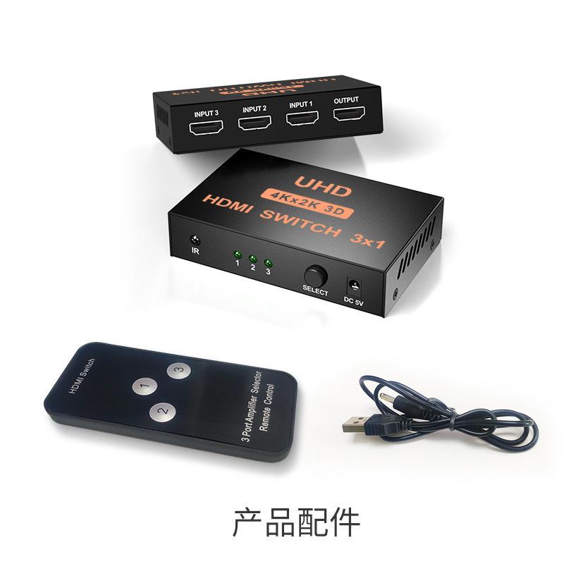 Conmutador de control remoto HDMI 3 en 1 salida carcasa de hierro de cola de cerdo 3 en 1 salida 3 cortes 1 HDMI 3 cortes 1 4K * 2K