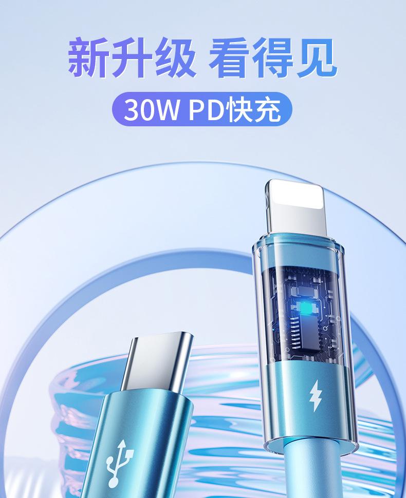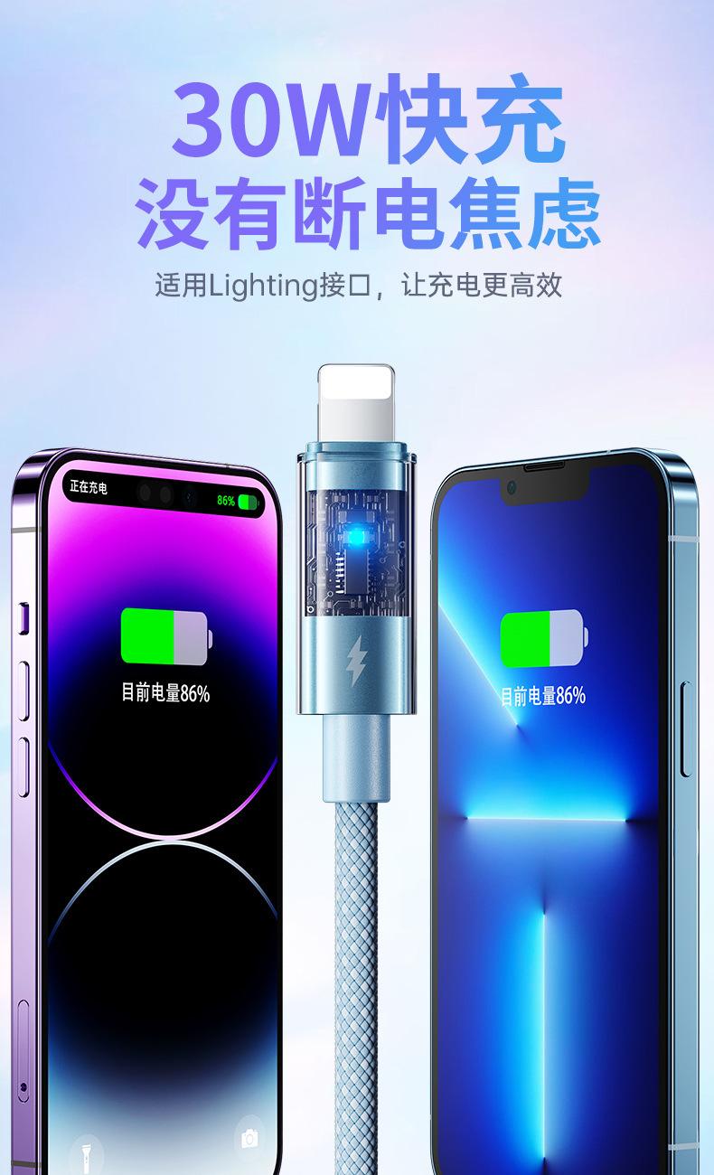 Carga Rápida PD 30W Línea de Datos de Carga Rápida Transparente Aplicable a Teléfono Móvil Apple 14/13/12 iphone11 Carga Rápida Coche