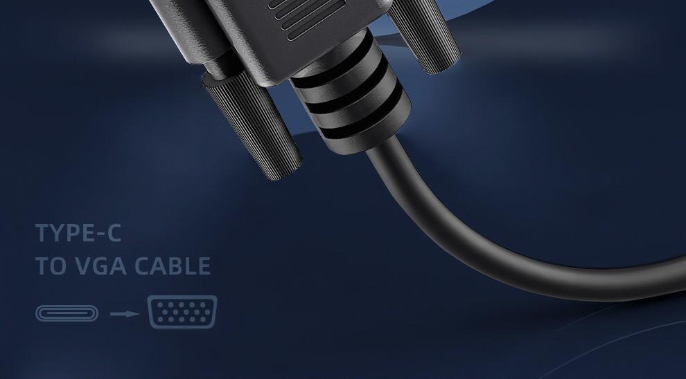 Adaptador tipo C a VGA macho de 1,8 m compatible con ordenador portátil/monitor con pantalla HD 1080P