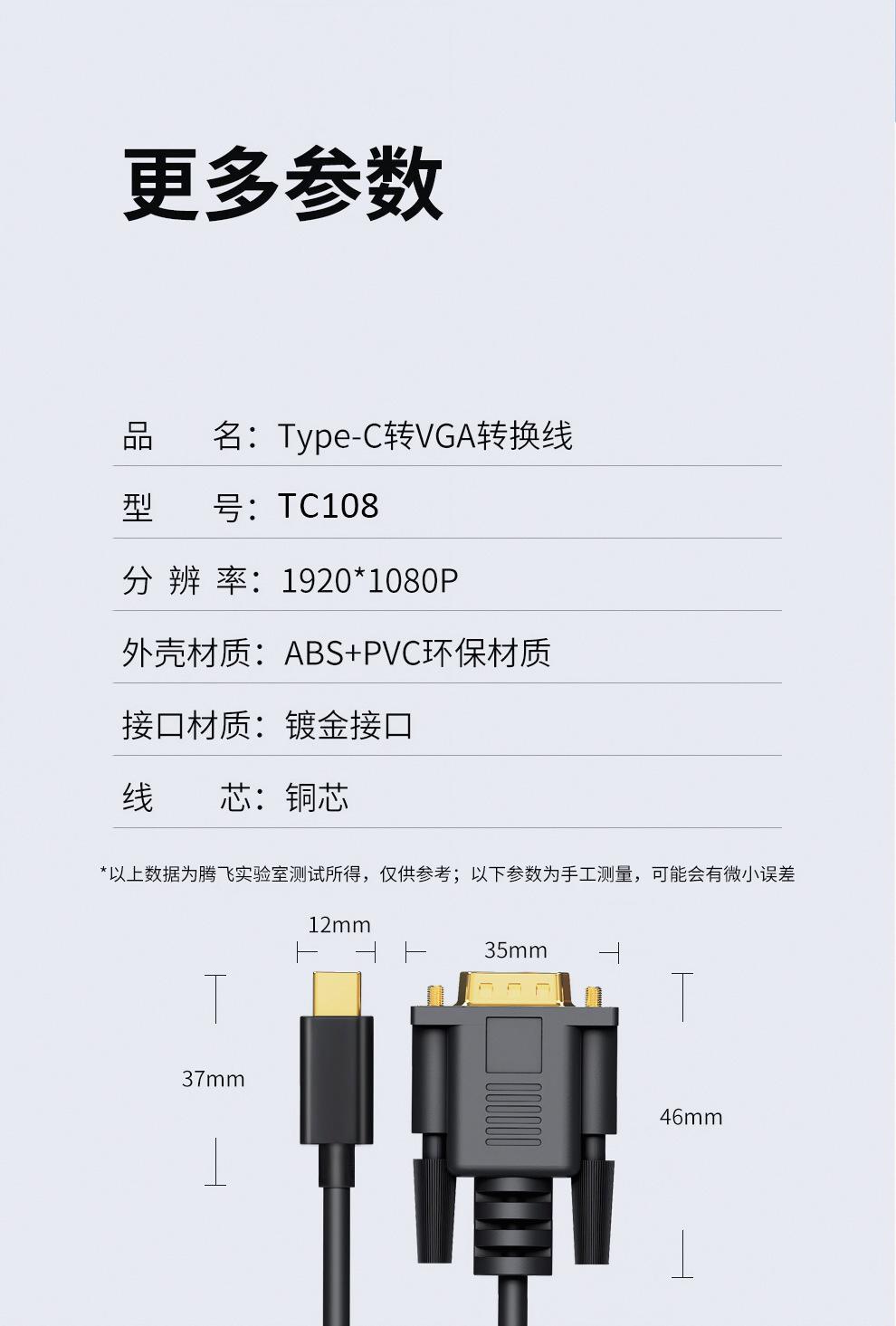 Type-c to vga 1080p