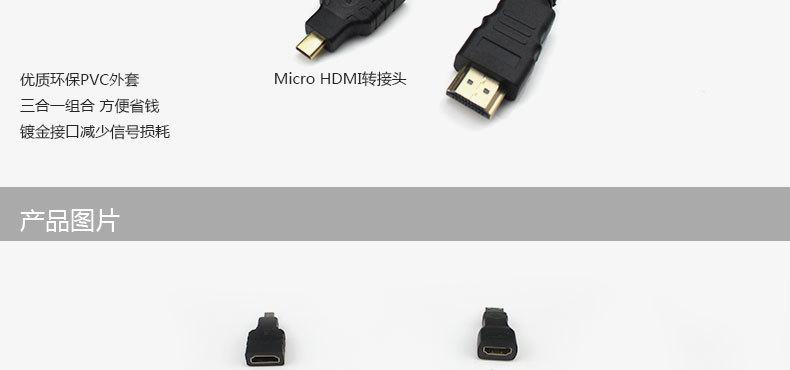 Three-in-one complete set blister packaging, Three-in-one complete pe bag, Hdmi cable [ 1.5m ], Micro hdmi ada...