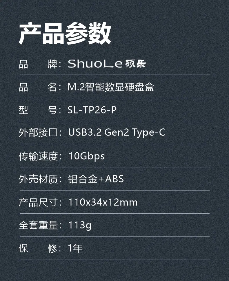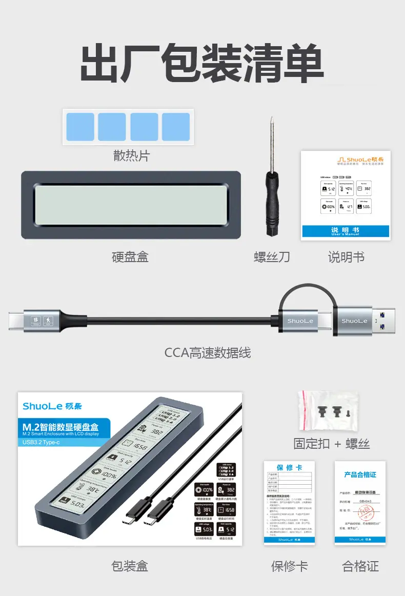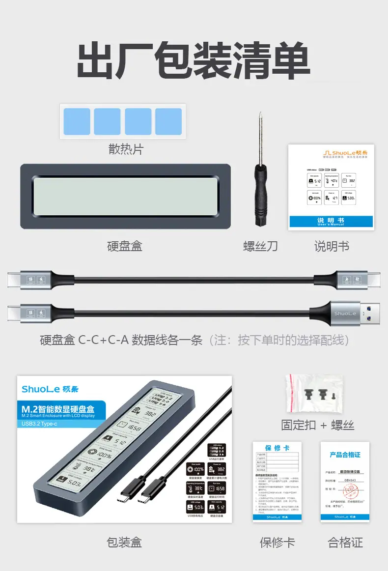 Sl-tp26-p-screen display nvme protocol hard drive box with c-c-a two-in-one data cable---chinese packaging