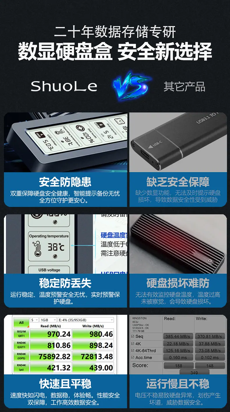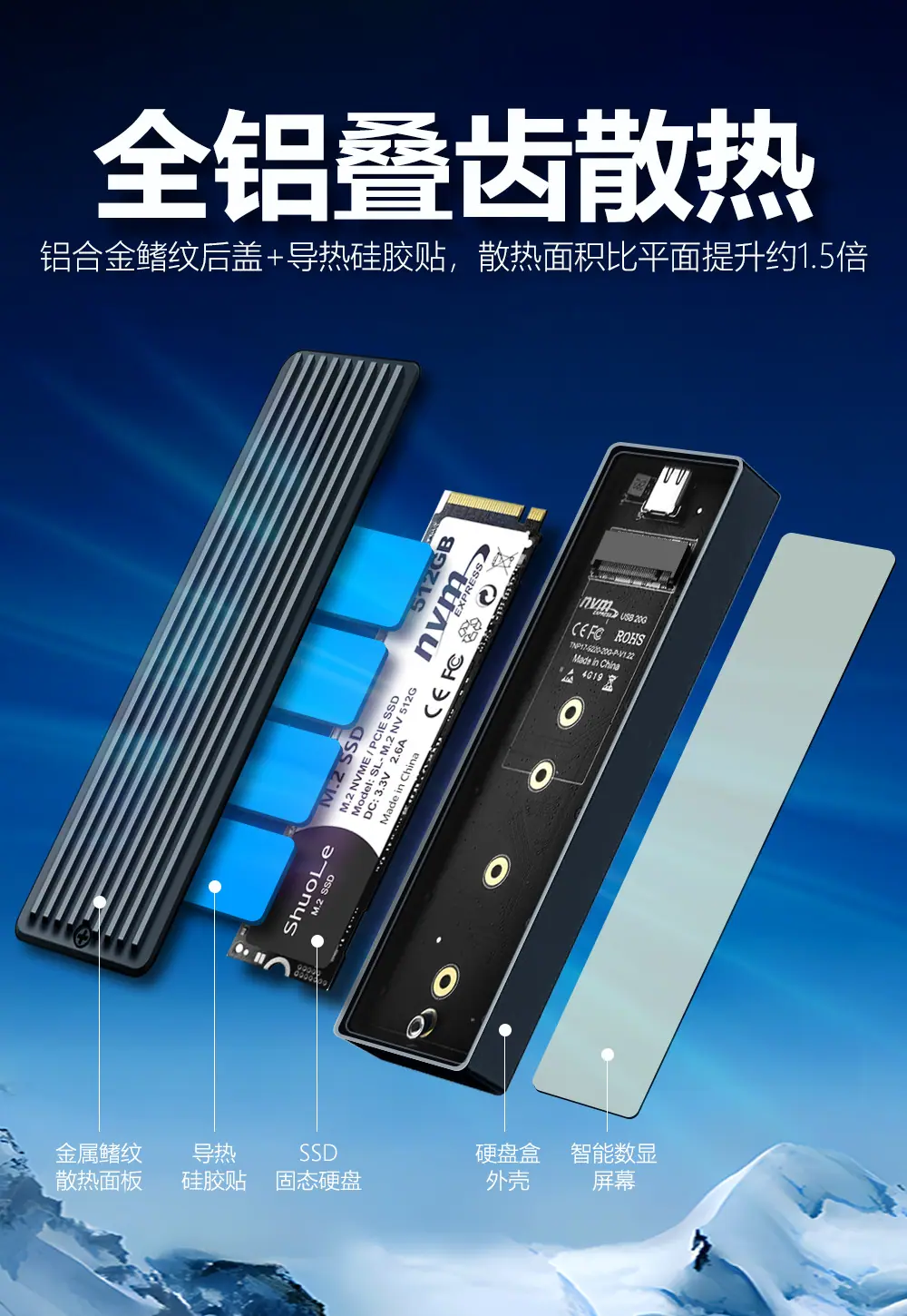 Compra Caja para Disco Duro M2 con Pantalla Digital Inteligente ShuoLe, Protocolo NVME, Carcasa Externa de Estado Sólido, Pantalla Grande al por mayor en Joom.pro