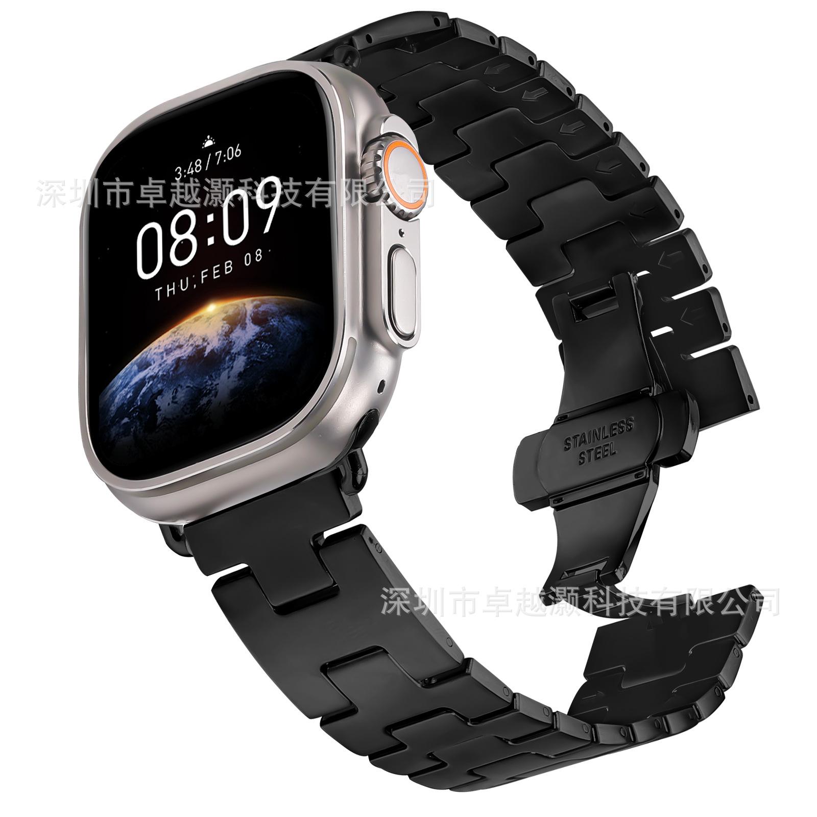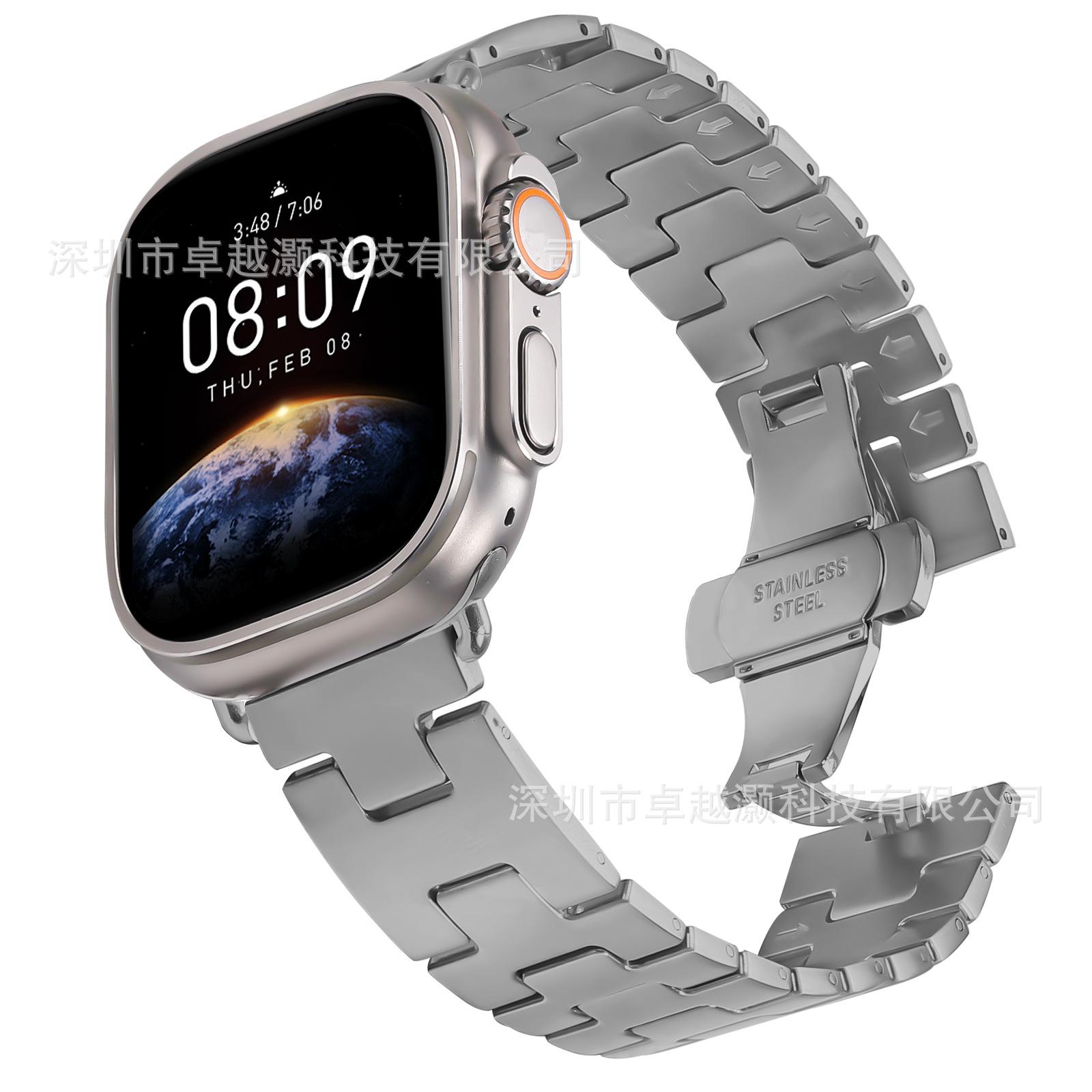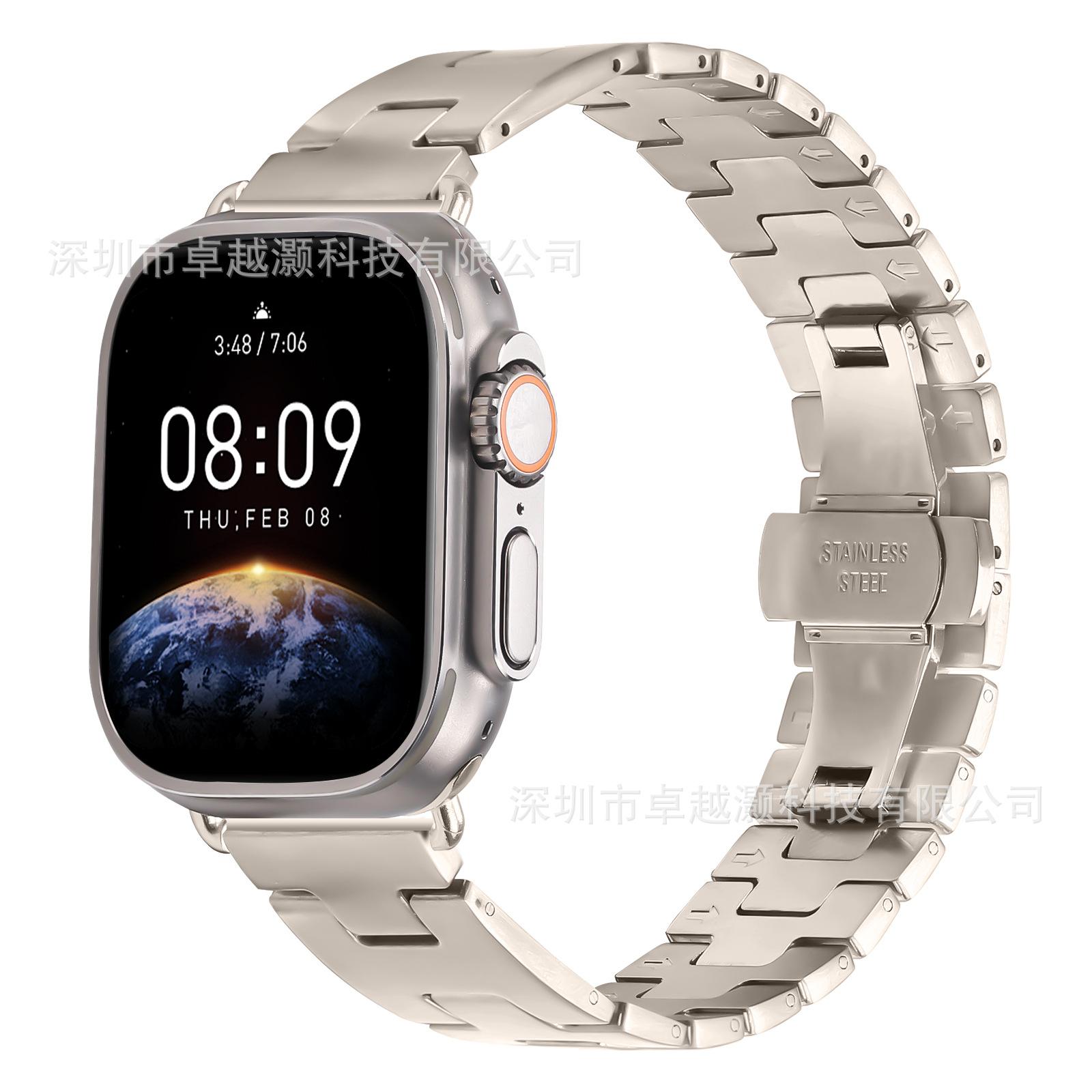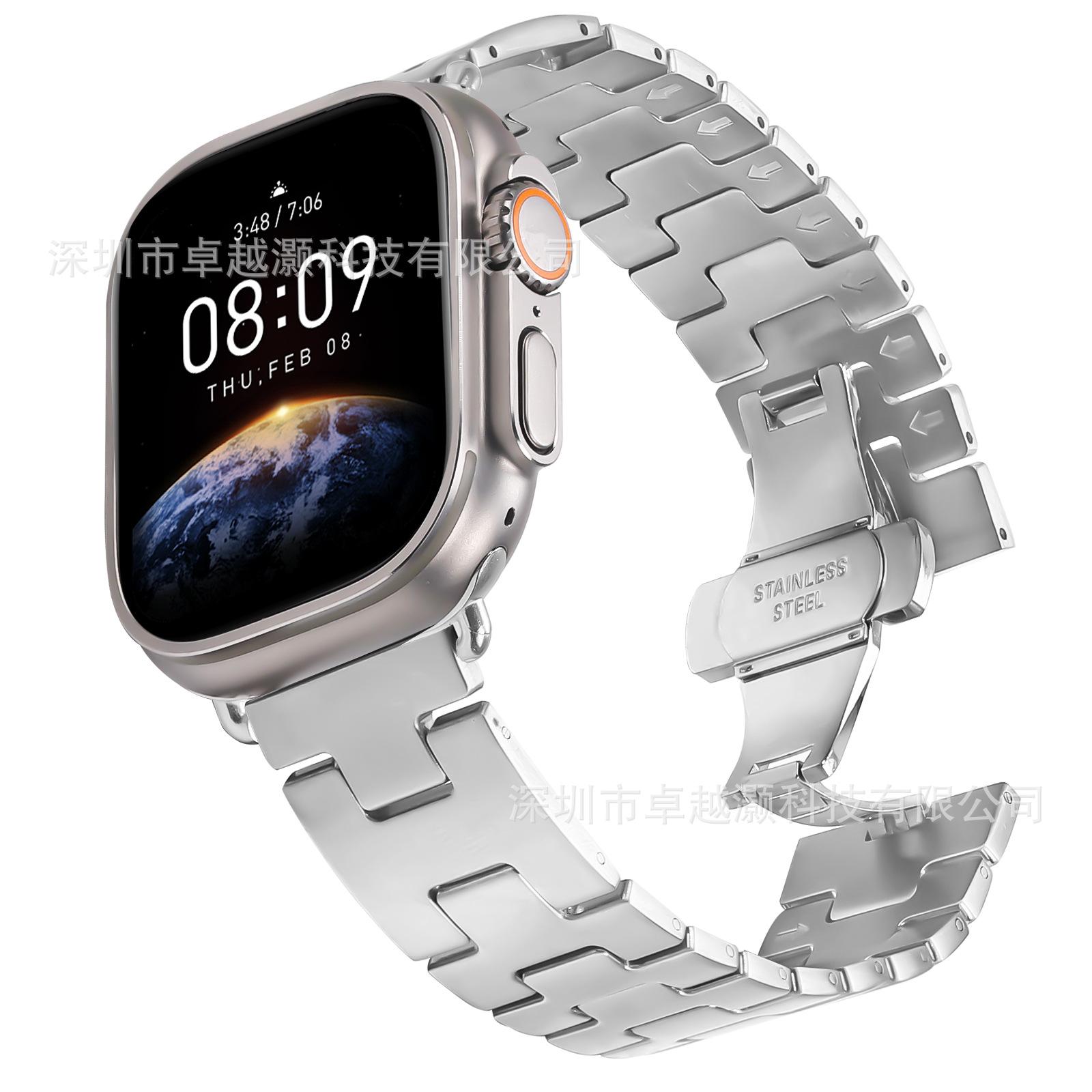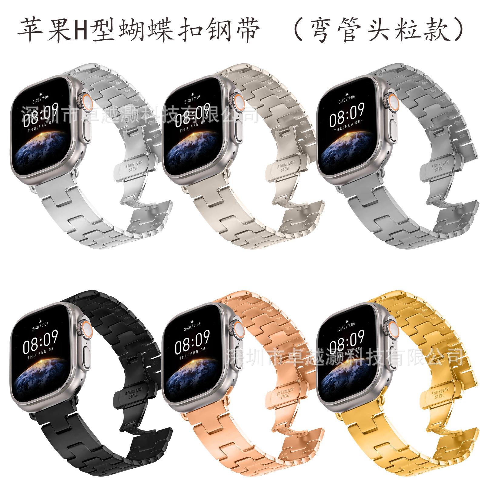 Compra Adecuado para Apple Watch Ultra Metal Smart Watch Band de acero inoxidable sólido tipo H de 1.ª a 10.ª generación al por mayor en Joom.pro