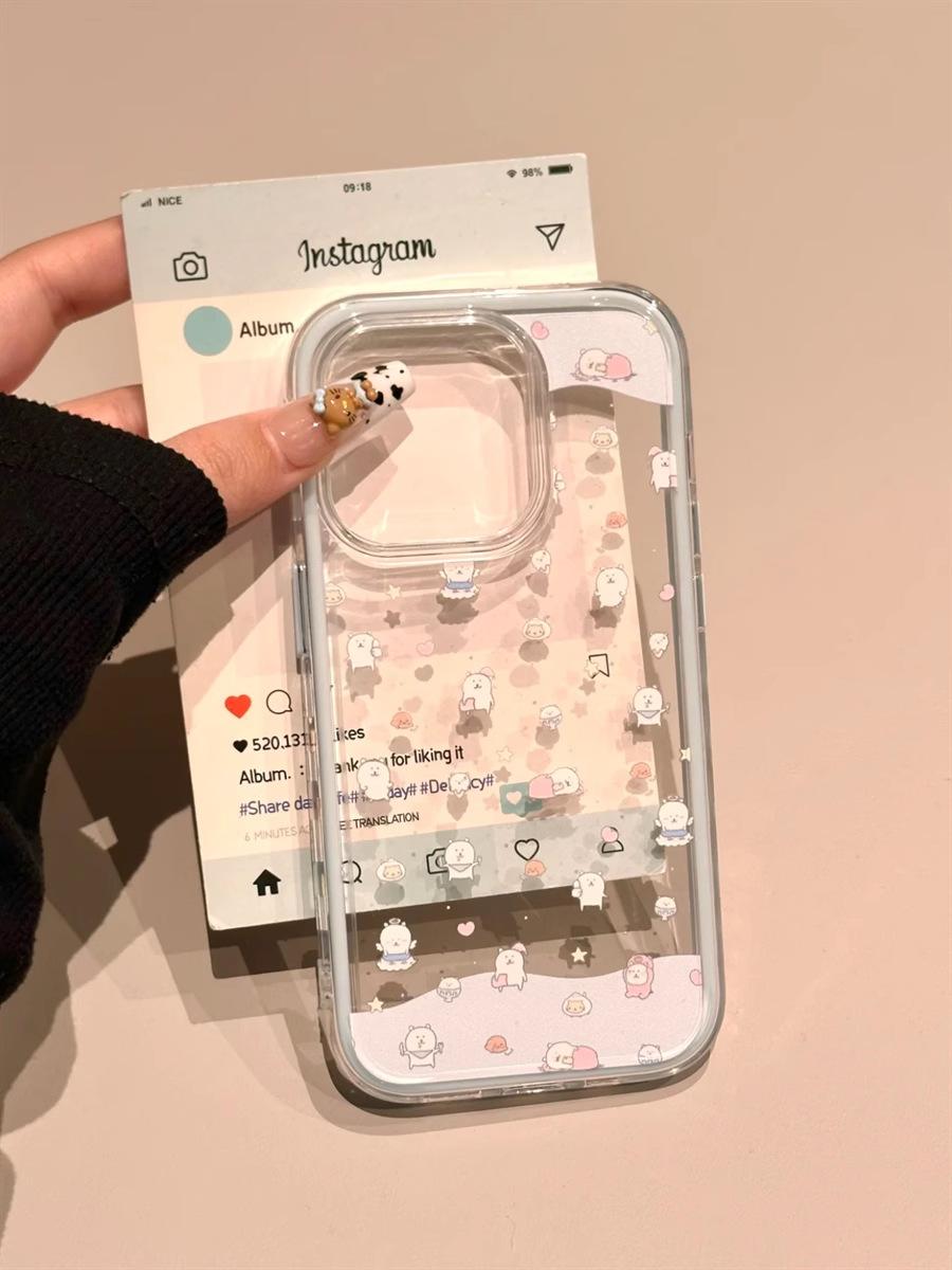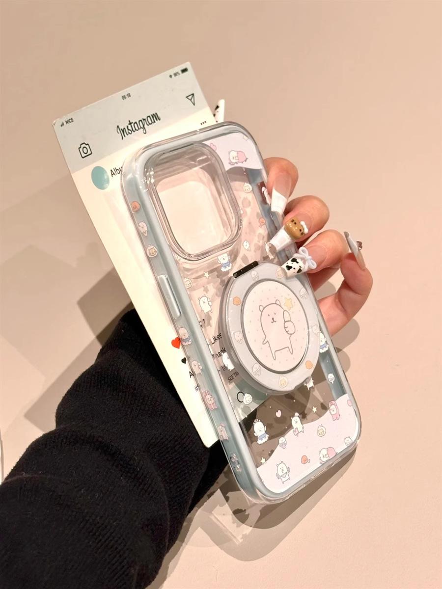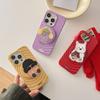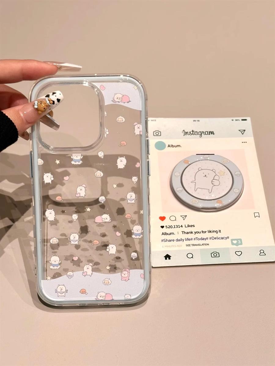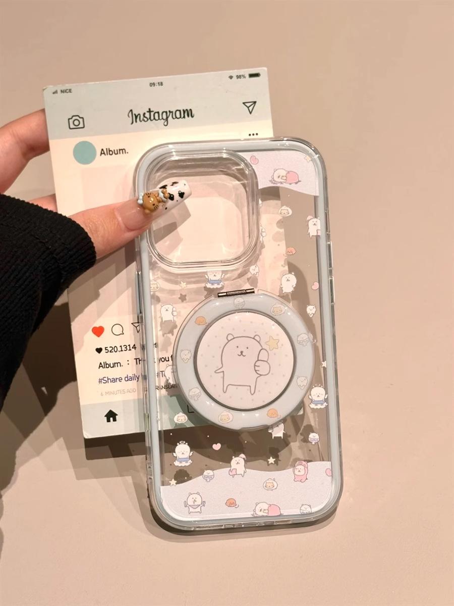 Lindo oso autoburla con soporte plegable para Apple Pro Max 16, funda para iPhone 15, dibujos animados 14, resistente a caídas 13