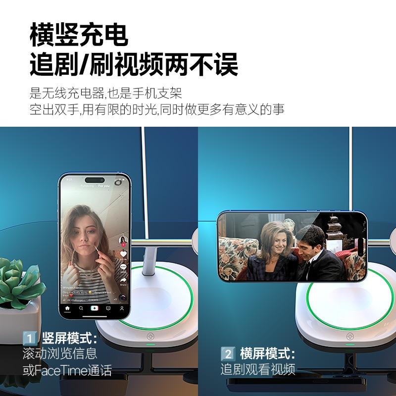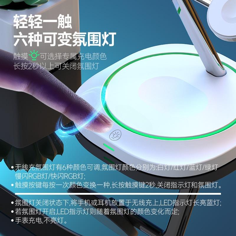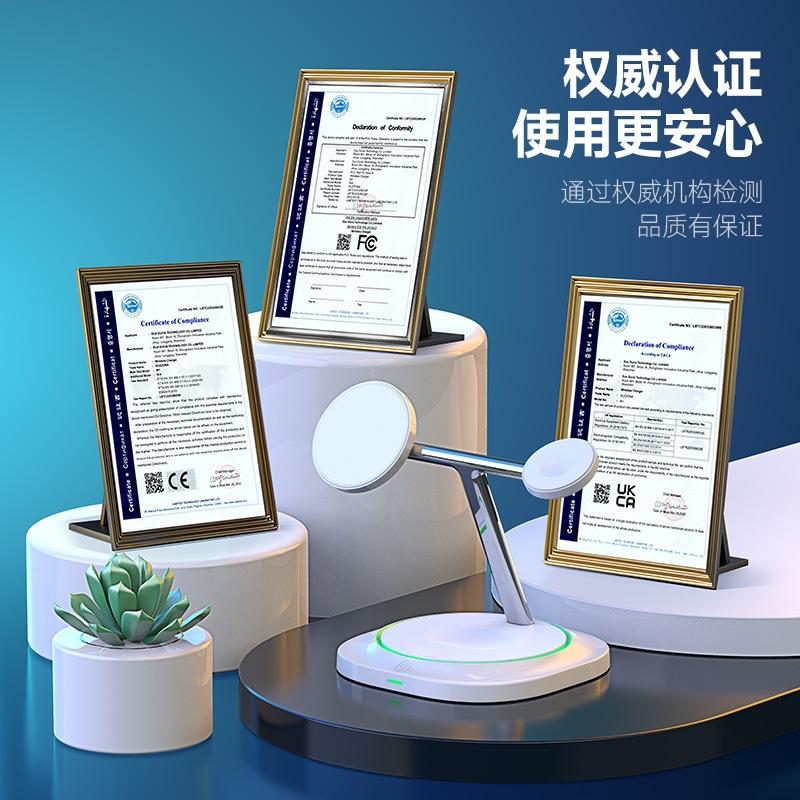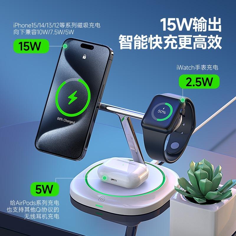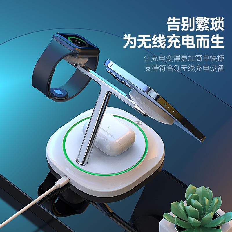 Soporte de Carga Tres en Uno de 15W Transfronterizo con Luz Carga Inalámbrica Rápida Adecuado para Carga Inalámbrica de Teléfonos Móviles Apple