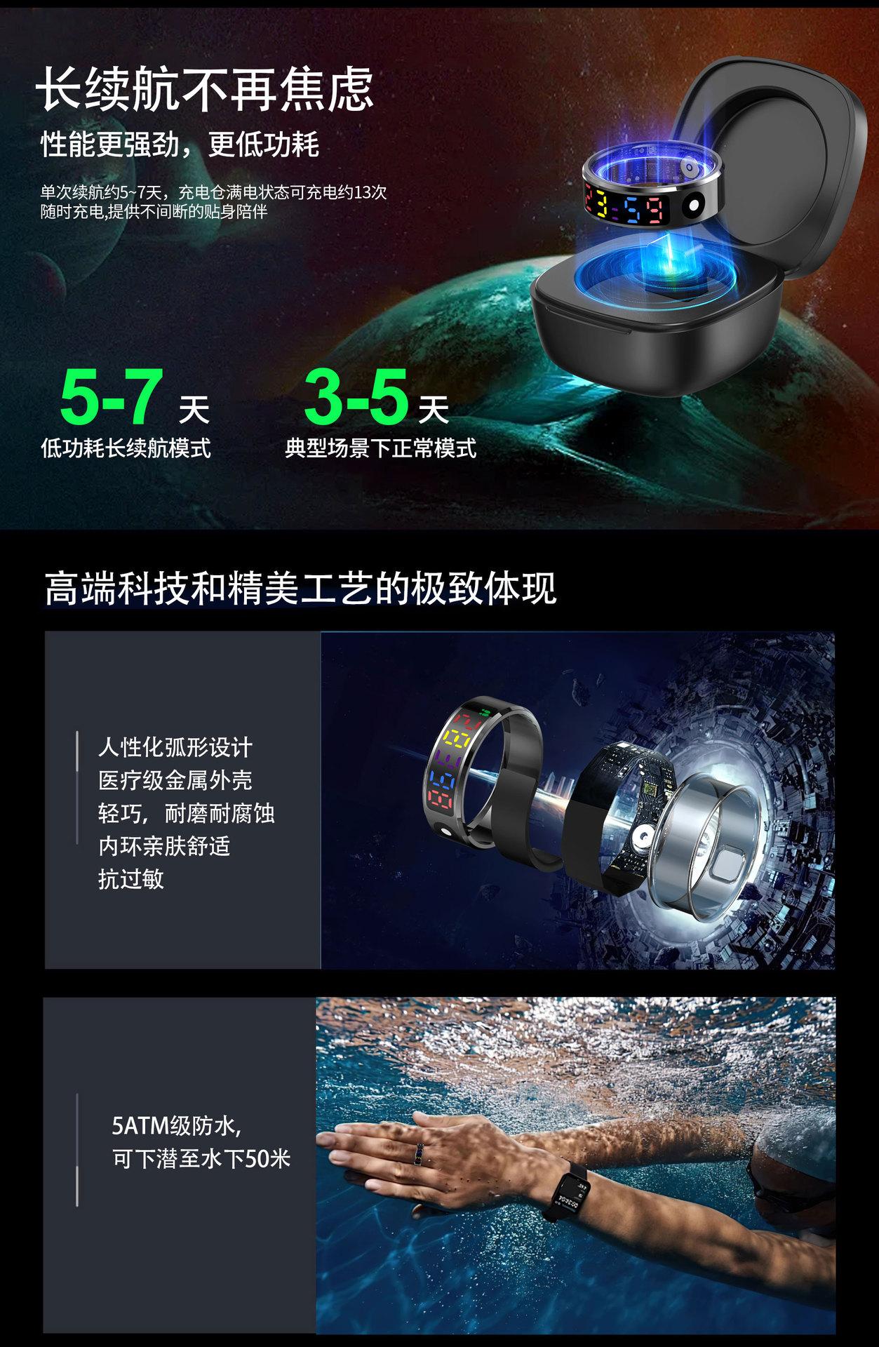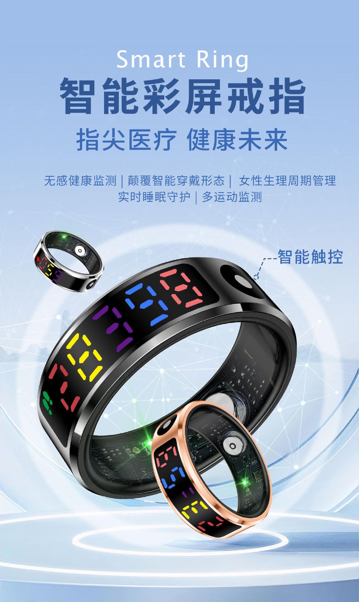 Anillo Inteligente Nuevo con Pantalla Transfronteriza Monitoreo de Salud del Sueño Frecuencia Cardíaca Oxígeno en Sangre Resistente al Agua Anillo Deportivo Transfronterizo