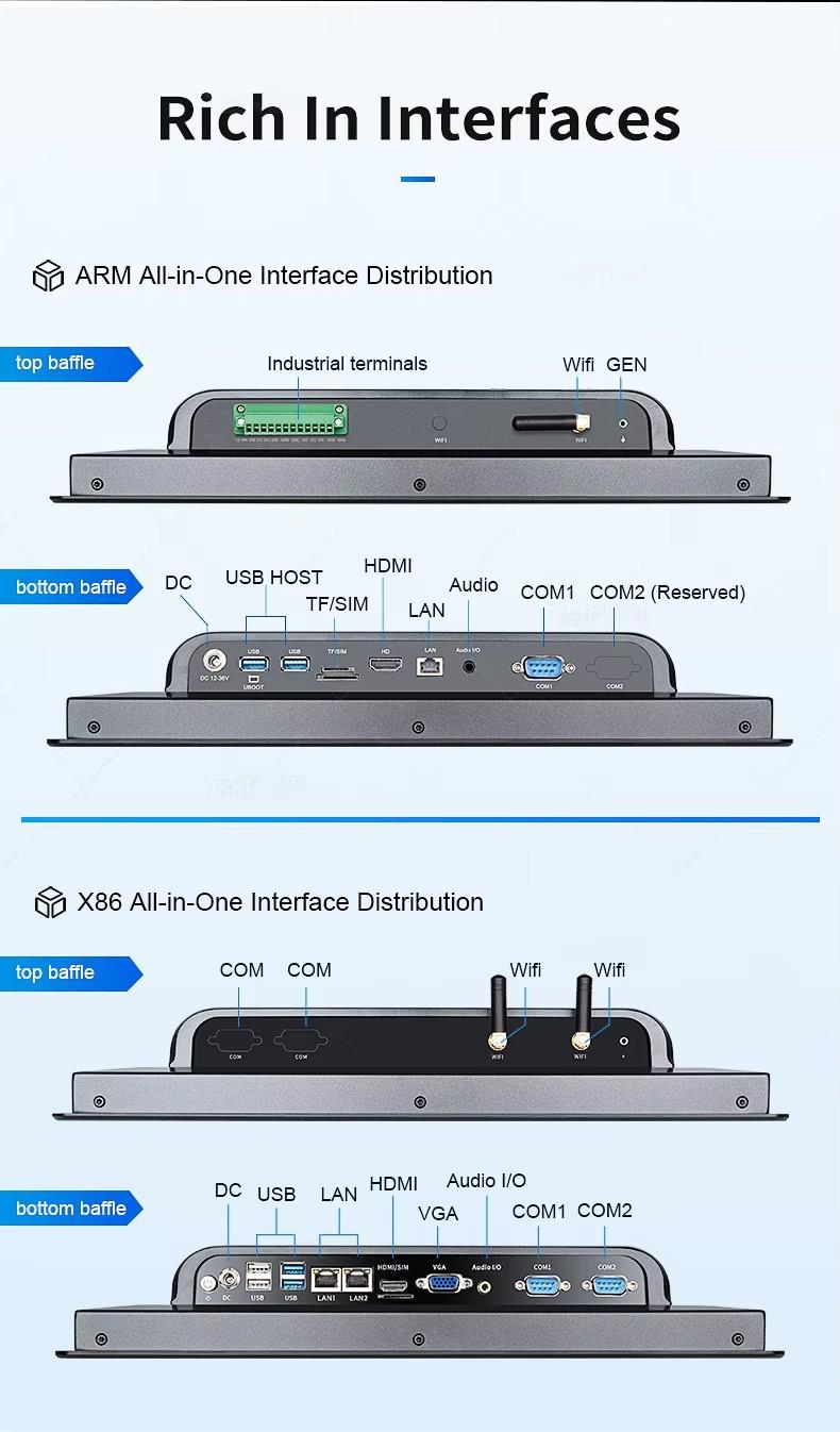 PC de panel de 10-23,8 pulgadas, computadora integrada, control industrial todo en uno, máquina táctil todo en uno