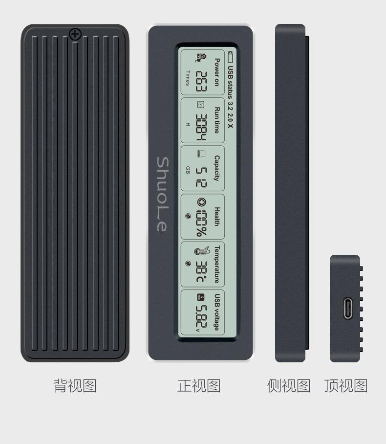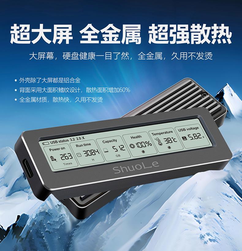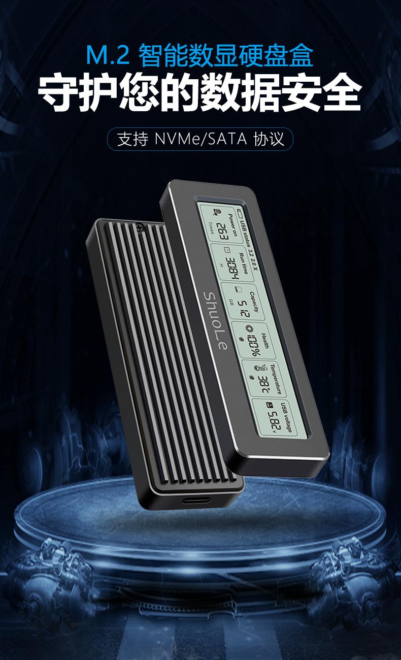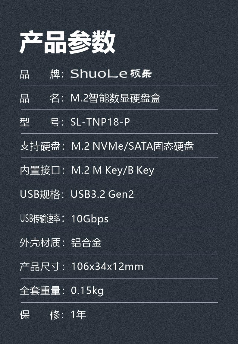 Sl-tnp18-p horizontal screen display all-metal nvme/ngff protocol hard drive box with ac+cc dual lines---english packaging