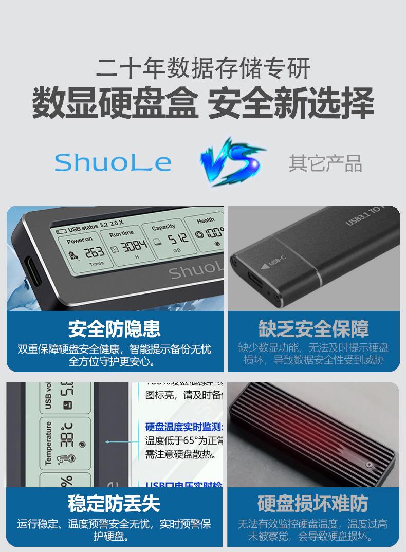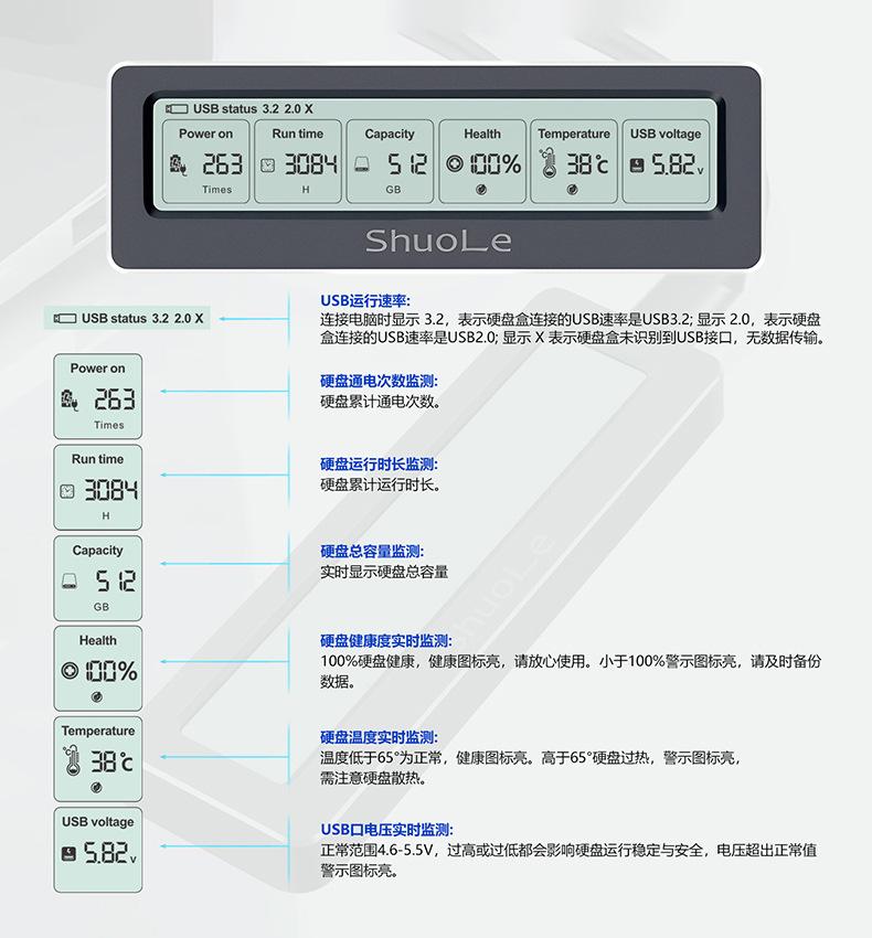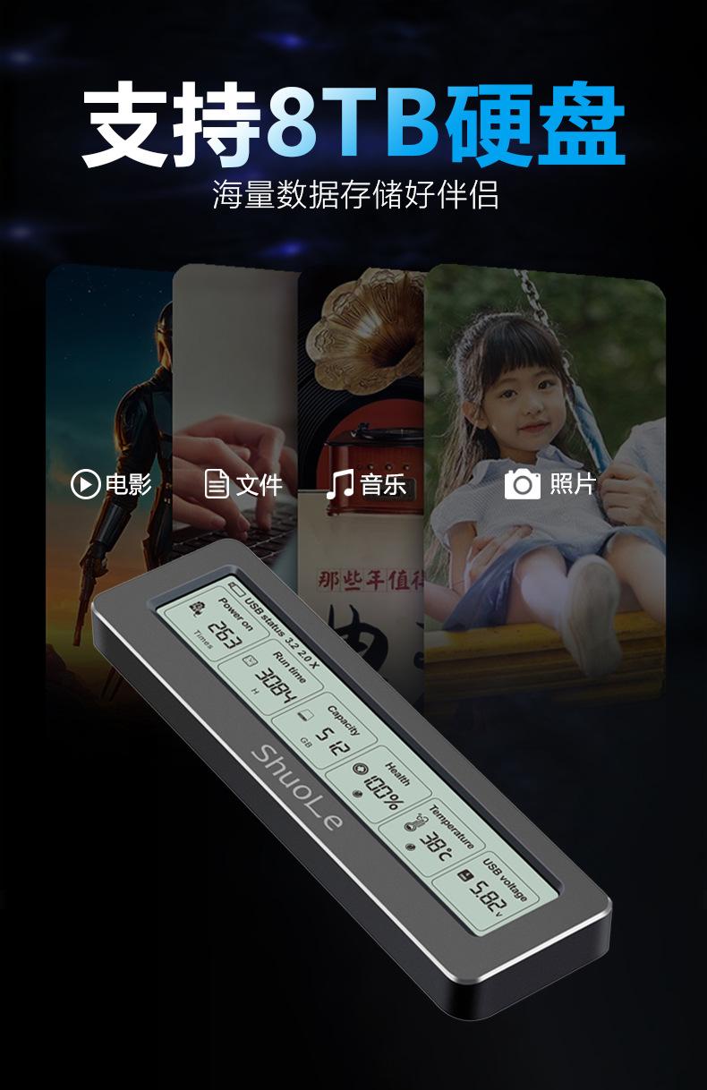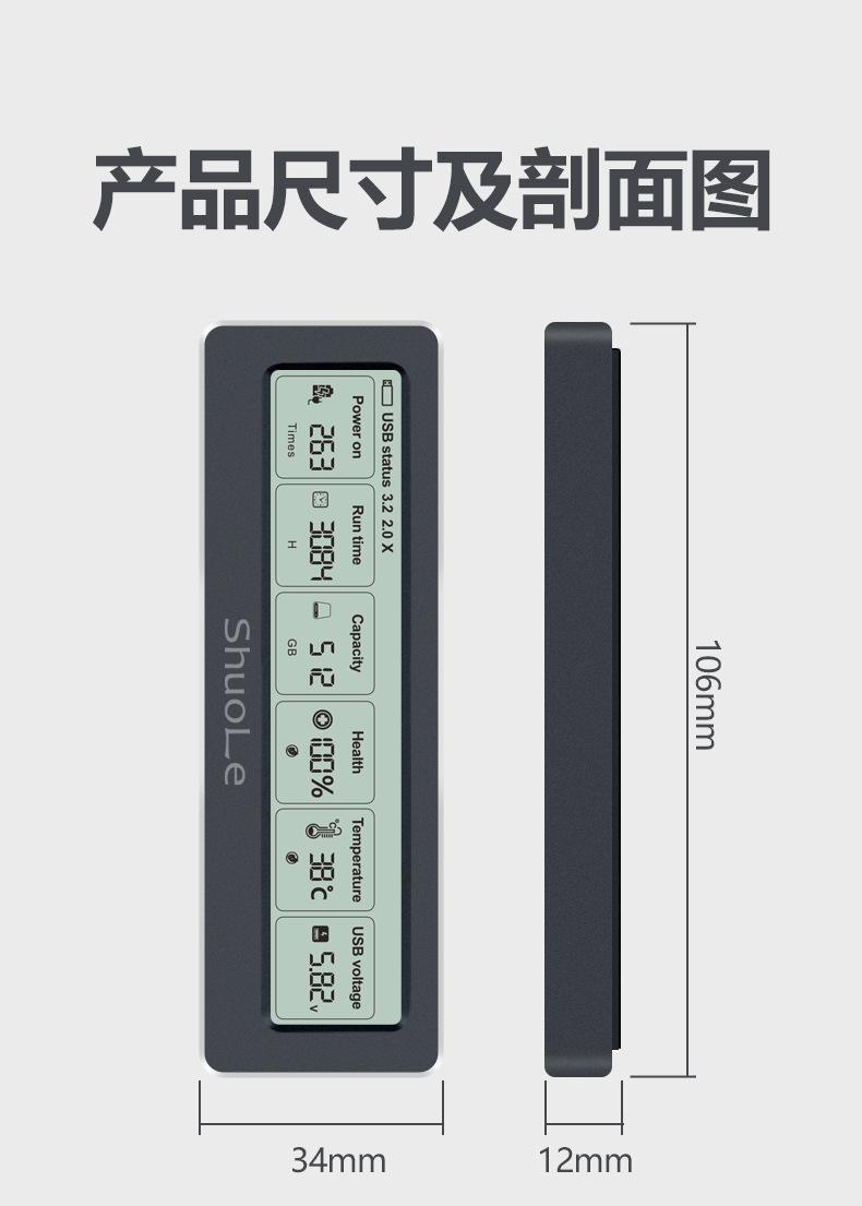 Sl-tnp18-p horizontal screen display all-metal nvme/ngff protocol hard drive box with ac+cc dual lines---english packaging