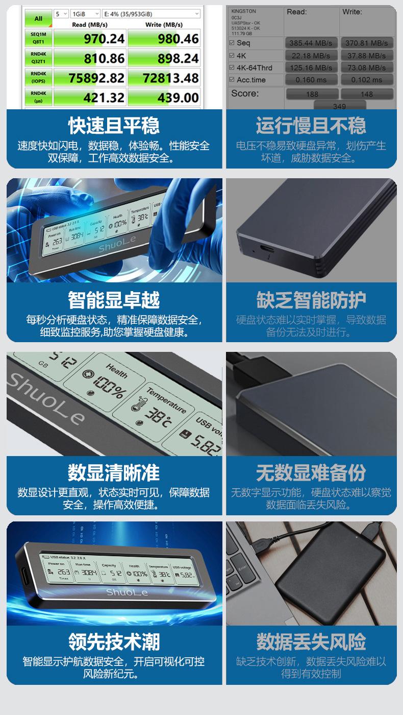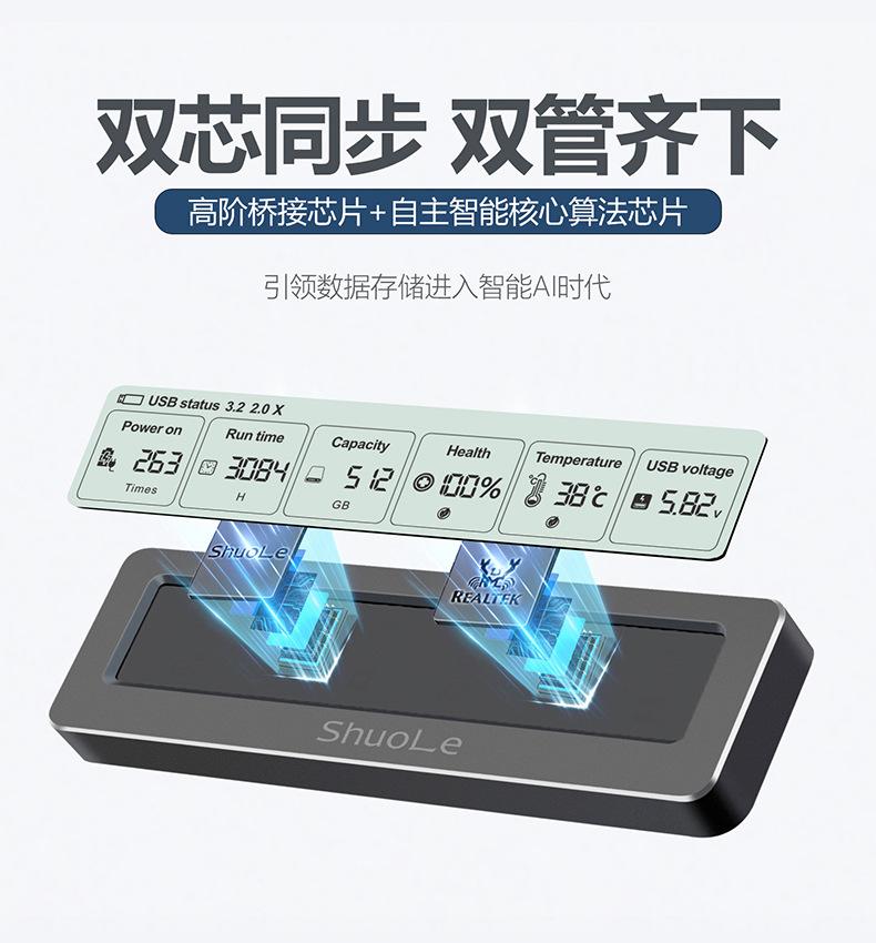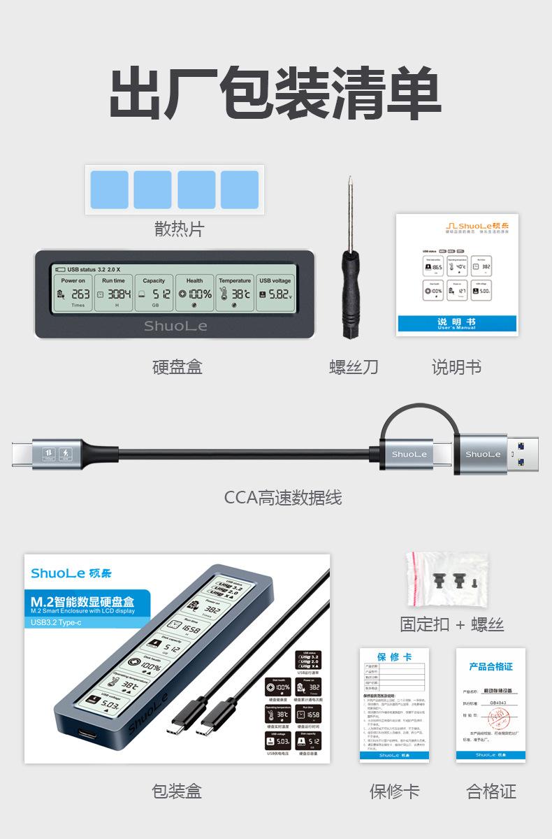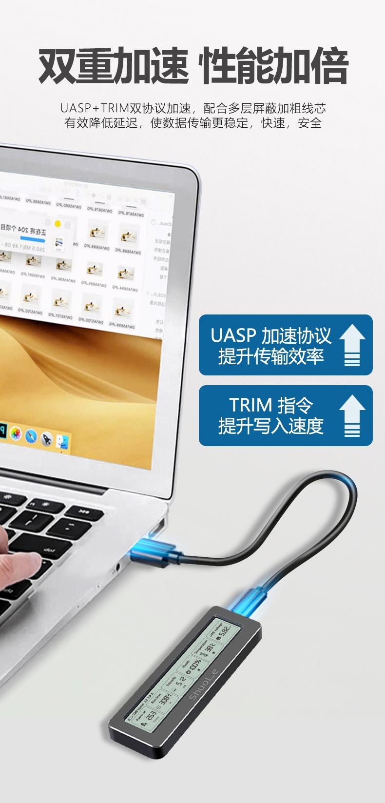 Sl-tnp18-p horizontal screen display all-metal nvme/ngff protocol hard drive box with ac+cc dual lines---chinese packaging