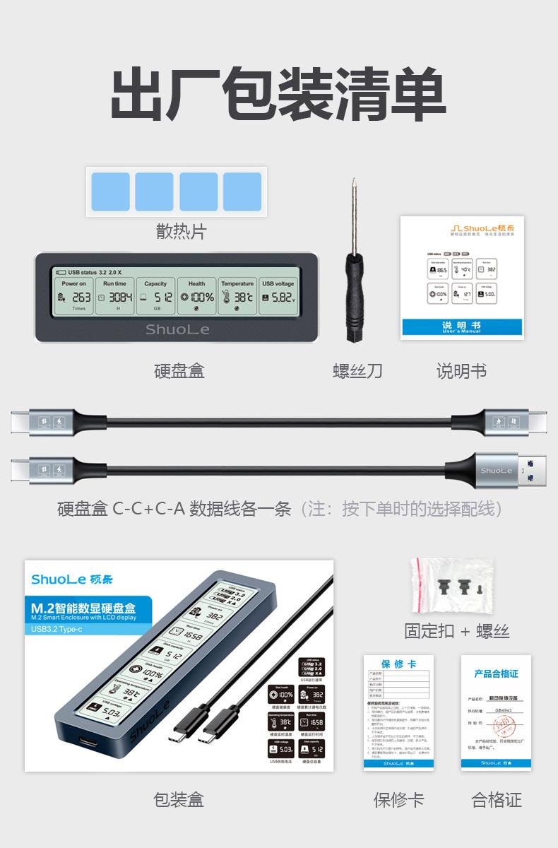 Sl-tnp18-p horizontal screen display all-metal nvme/ngff protocol hard drive box with c-c-a two-in-one data cable---chinese packaging