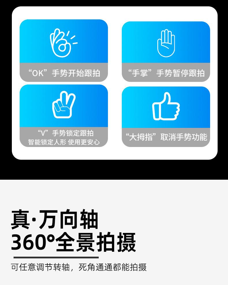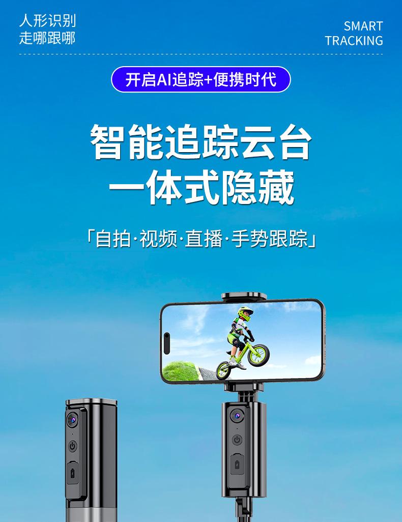 Palo selfie para teléfono móvil con paneo-inclinación, artefacto de disparo con seguimiento de 360 grados, estabilizador de cuatro ejes, fotografía selfie en vivo, multifunción.