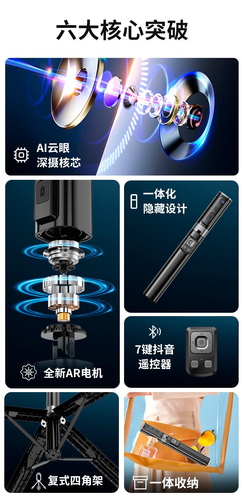 Hidden gimbal selfie stick [without light] four-legged stability +360 ° Rotate