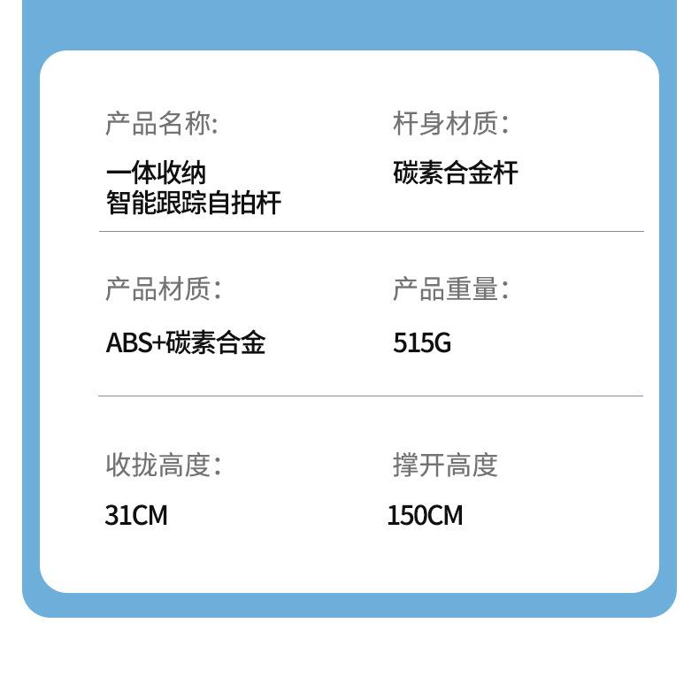 Hidden gimbal selfie stick [fill light*1] four-legged stability +360°Rotate