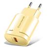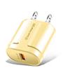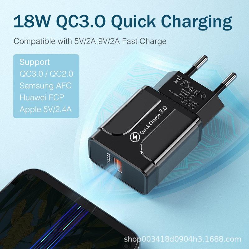 Cargador rápido QC3.0 de un solo puerto de 5 V/3 A con cabezal de carga rápida y carga flash para teléfono inteligente. Regulaciones europeas y estadounidenses.
