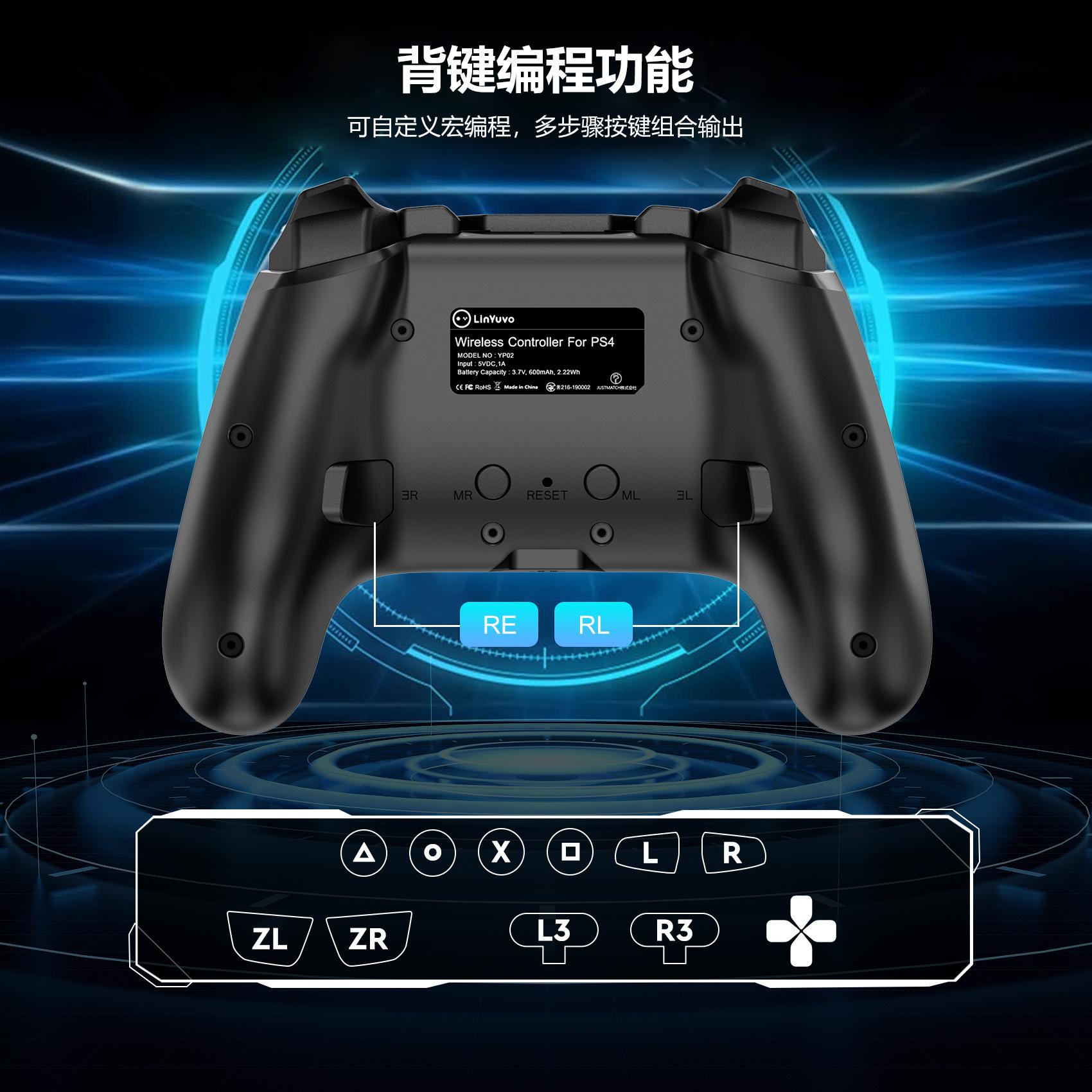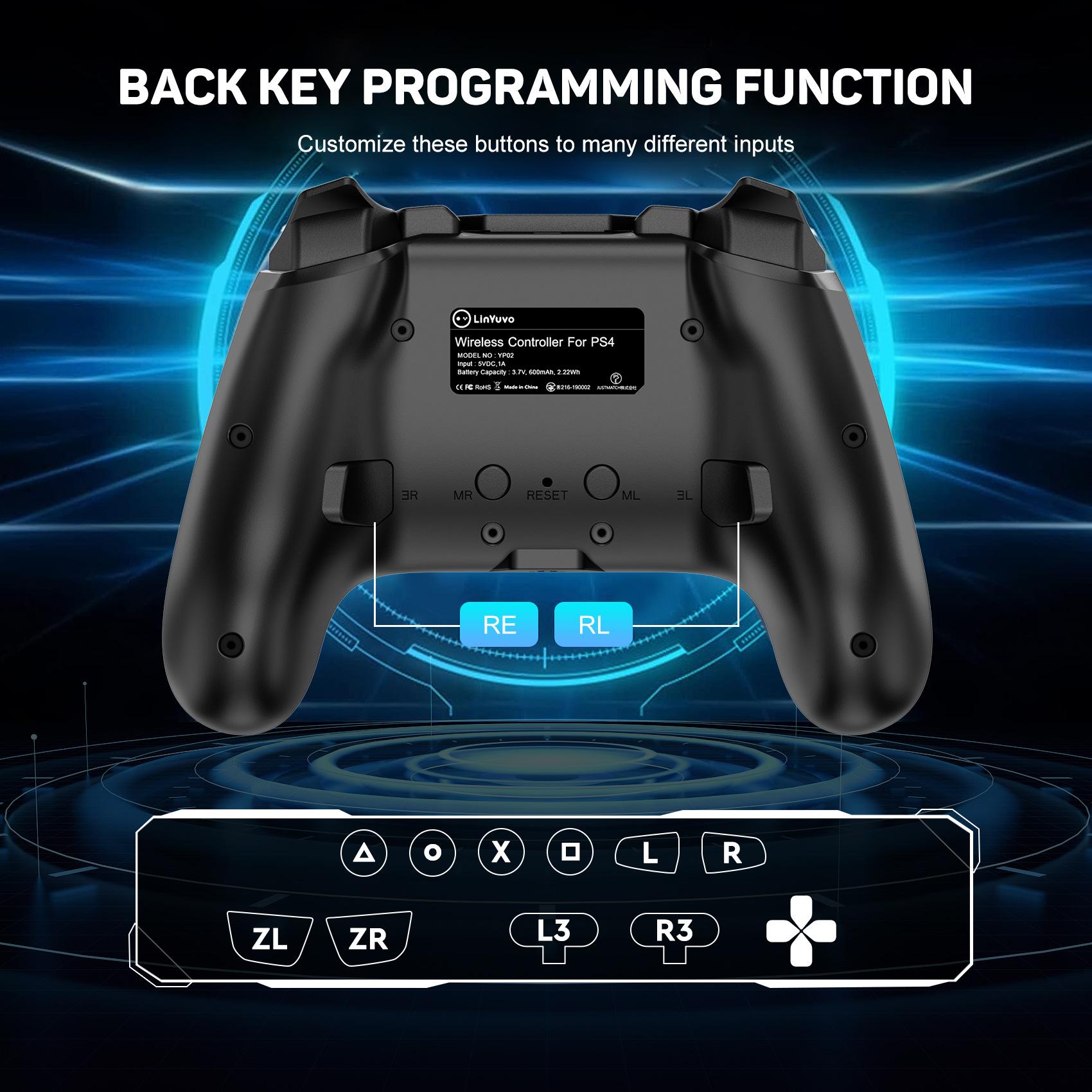 7. Botón macro de tecla trasera, programación macro personalizable, salida de combinación de teclas de varios pasos;