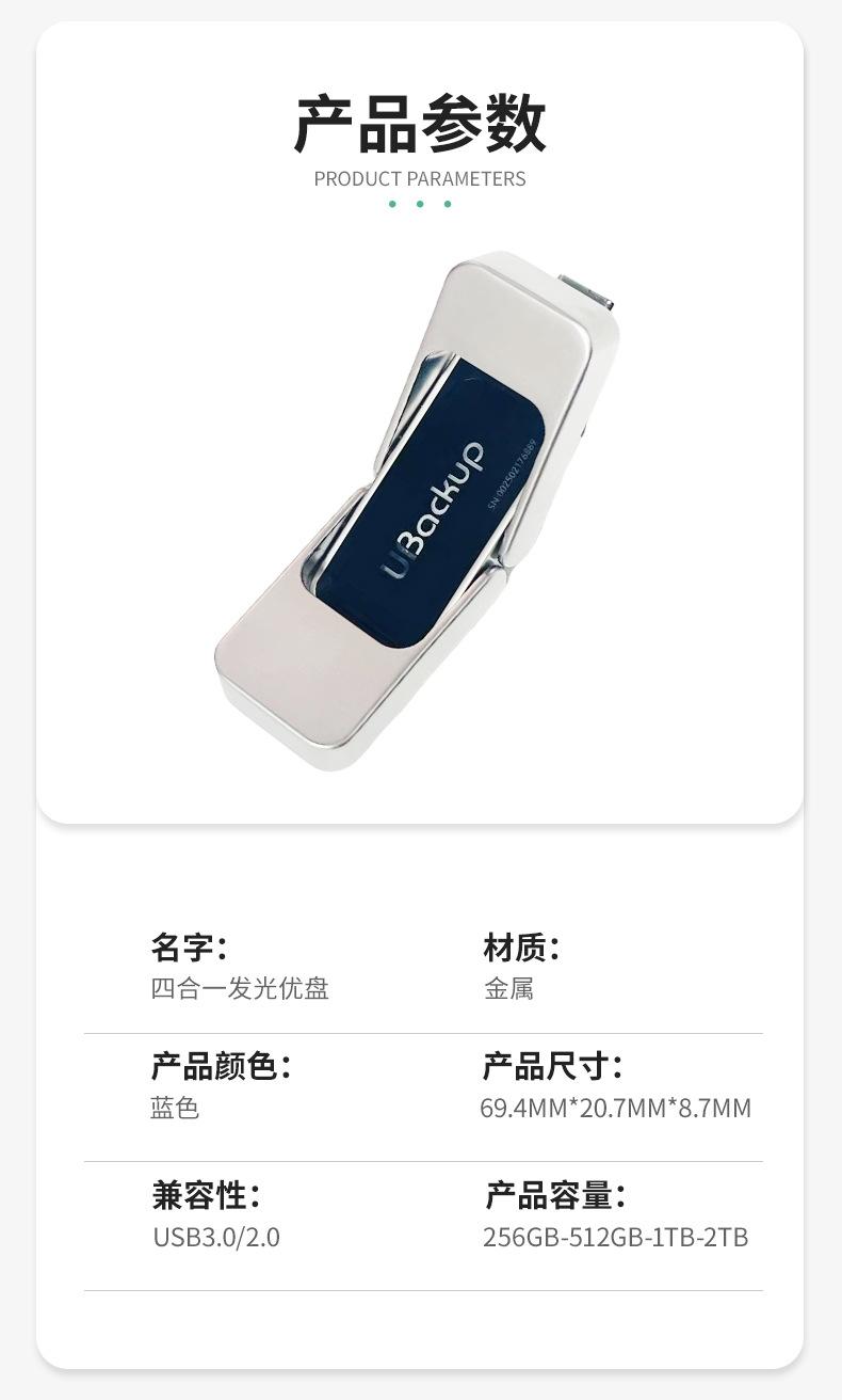 Nuevo disco U luminoso para teléfono móvil, disco U multifunción cuatro en uno transfronterizo, tipo C, Android, regalo, disco USB