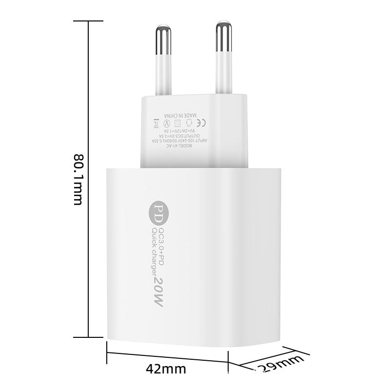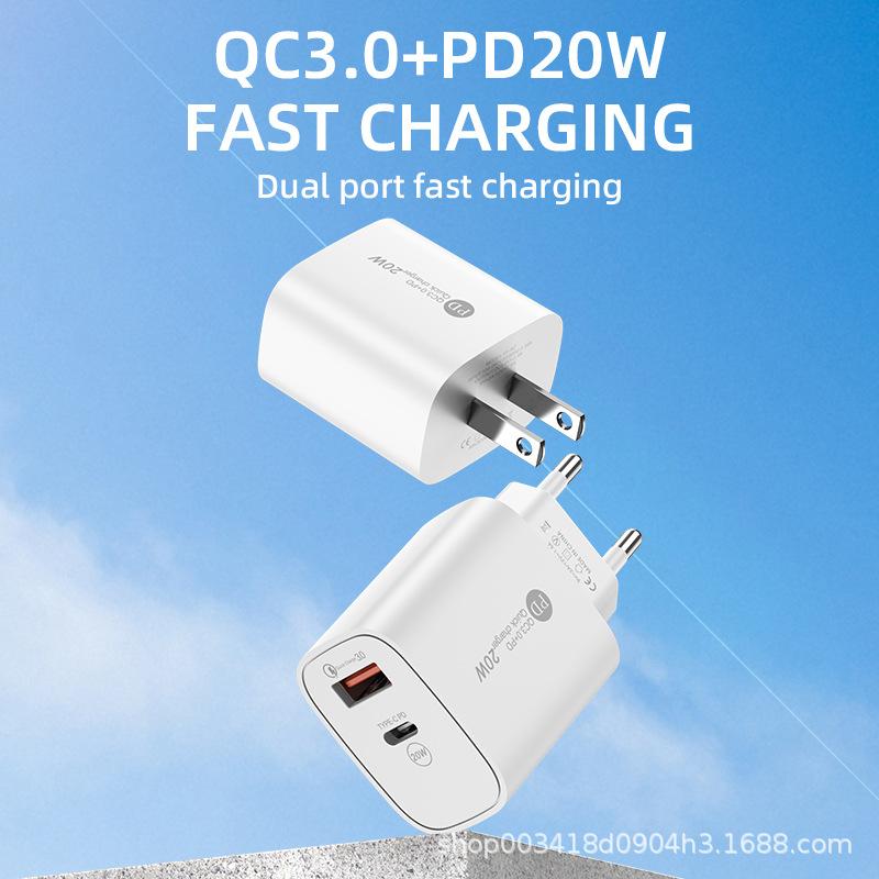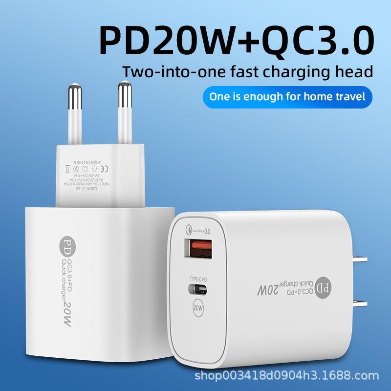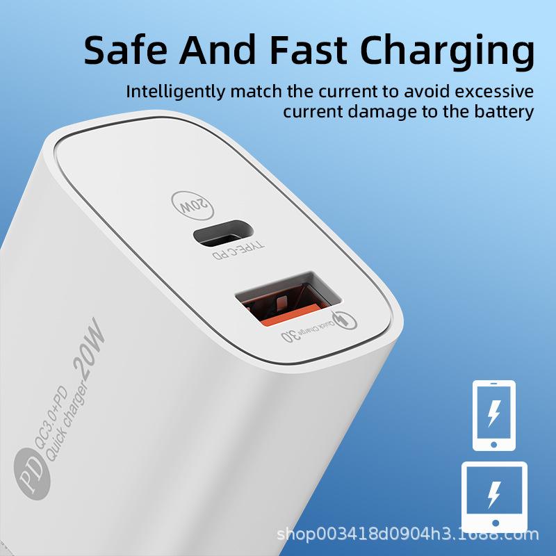 Cargador rápido PD20W con puerto USB QC3.0 para teléfonos Apple, Huawei y Android con cabezal de carga de CA.