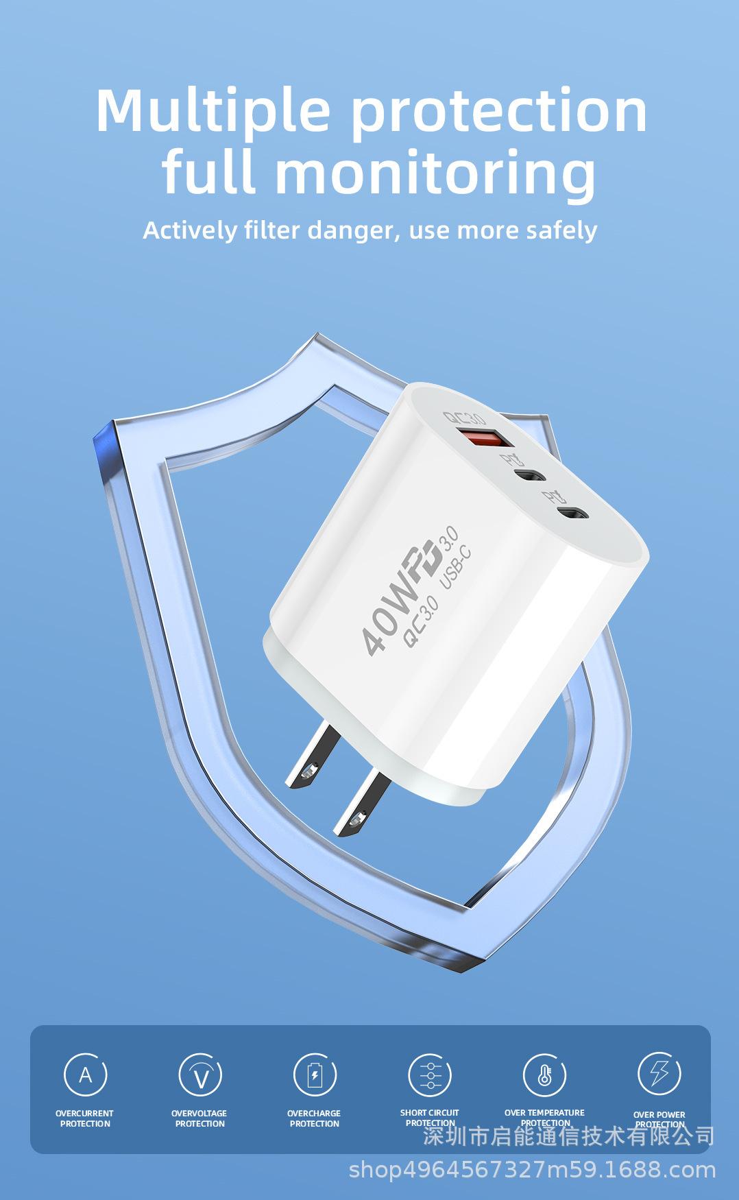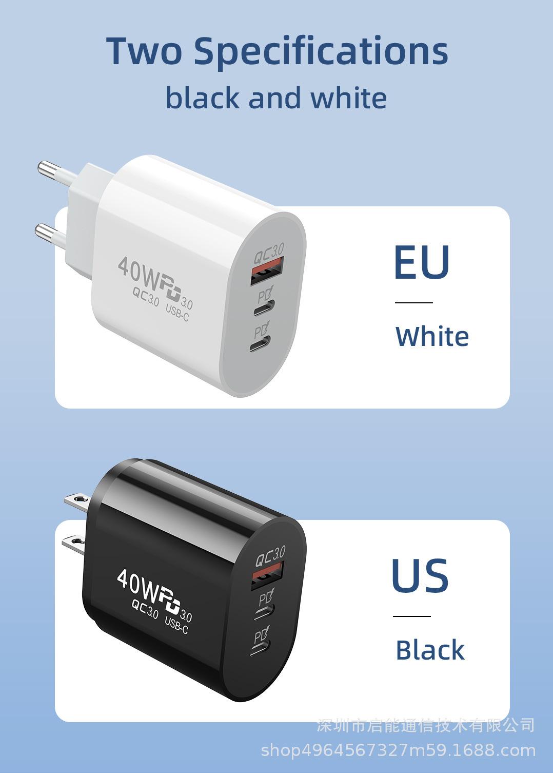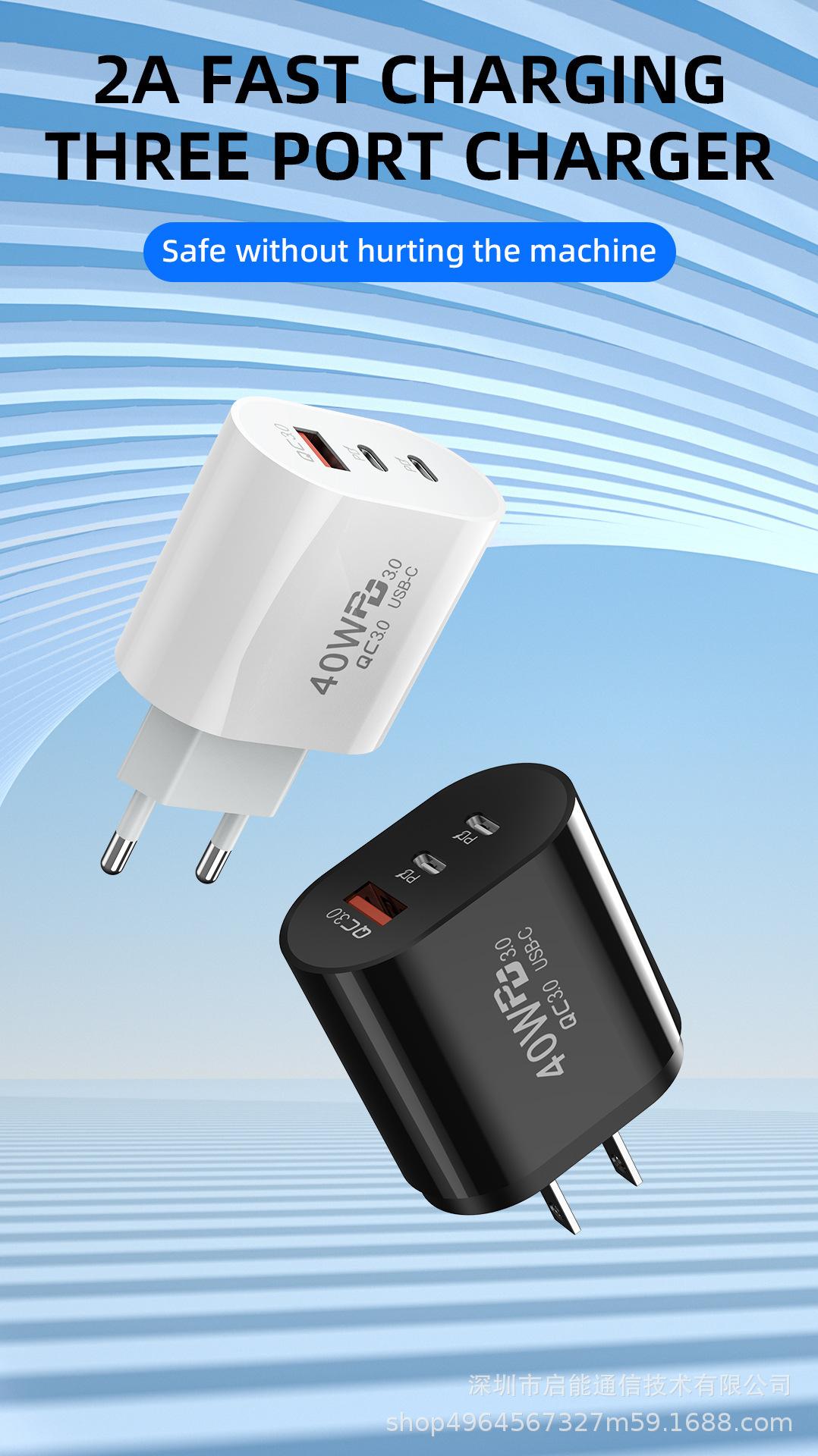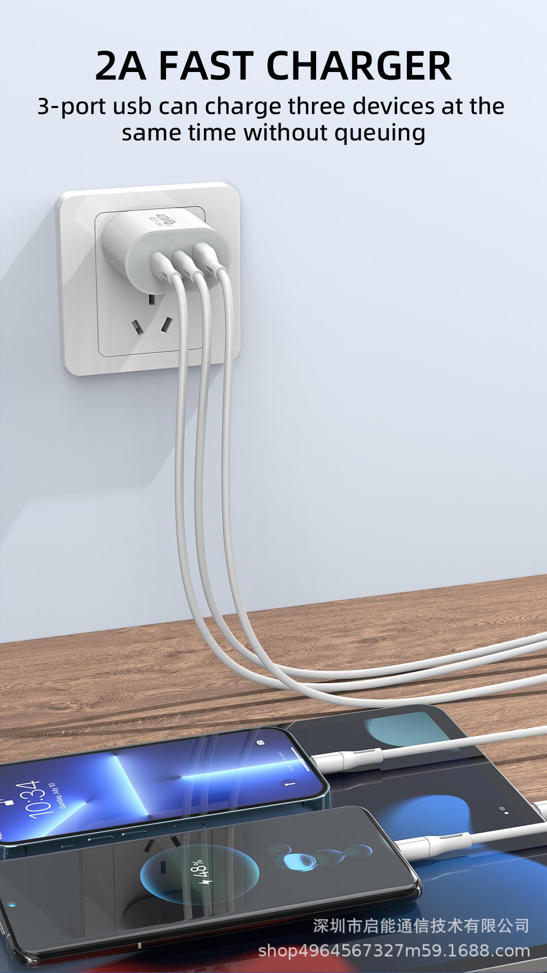 Cargador de teléfono móvil Android de EE. UU. aplicable a Huawei Apple, cabezal de carga rápida de tres puertos, estándar europeo, cabezal de carga doble 5v2a PD