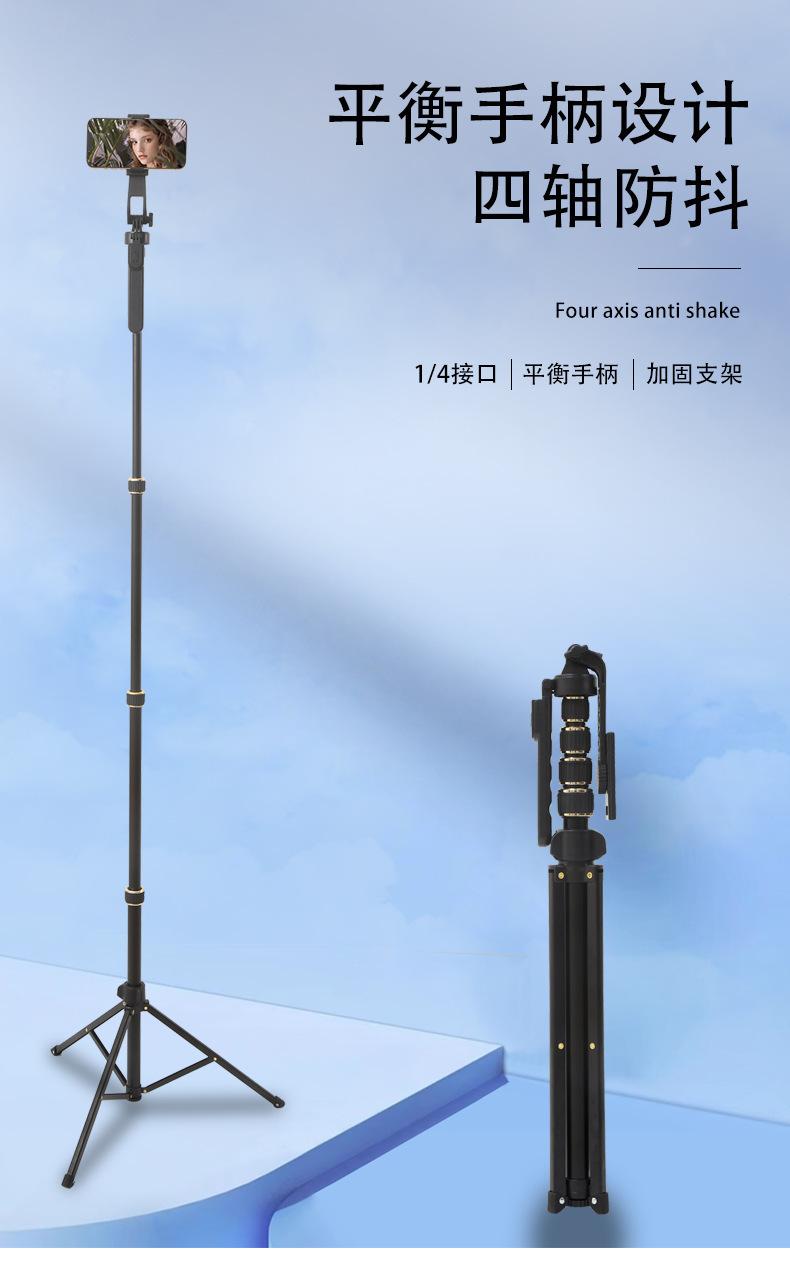 Soporte para teléfono móvil, palo selfie, portátil, para viajes, luz de relleno especial en vivo, disparo con Bluetooth, trípode telescópico de suelo
