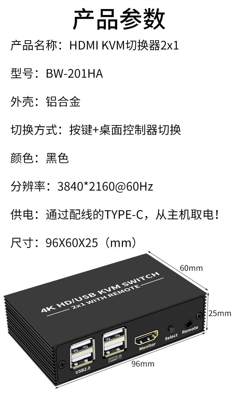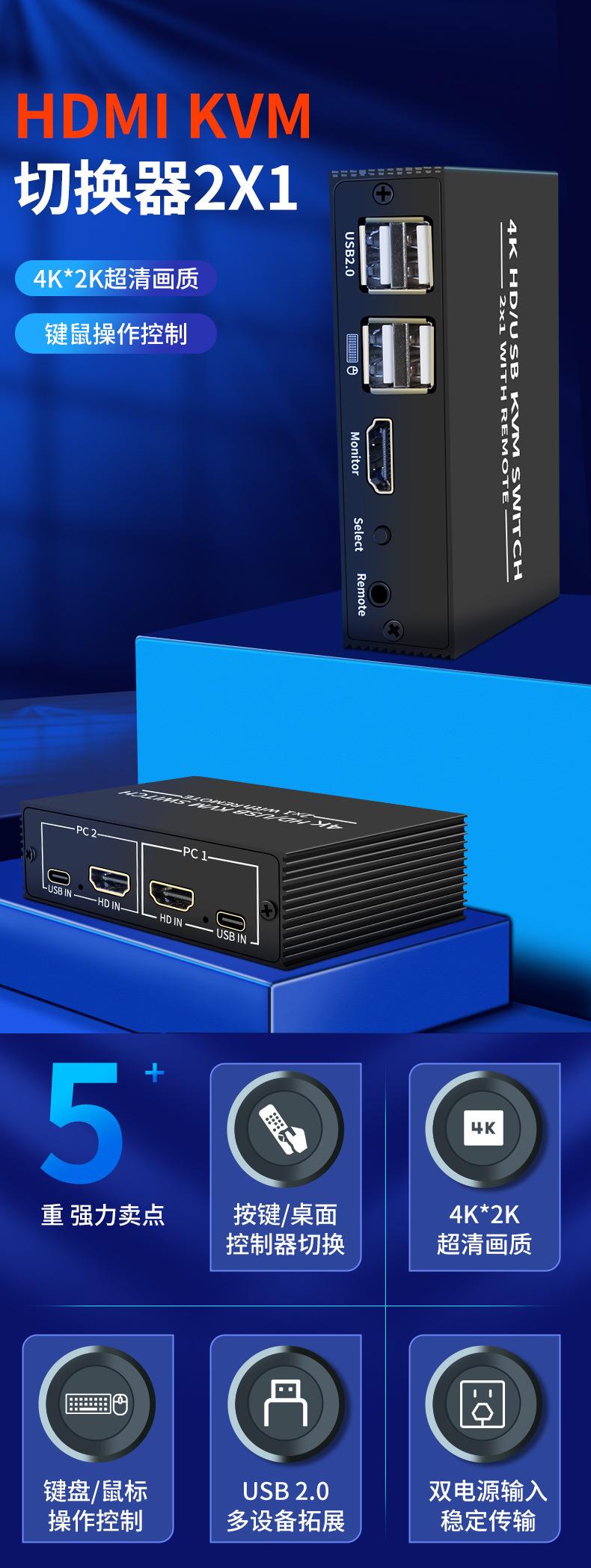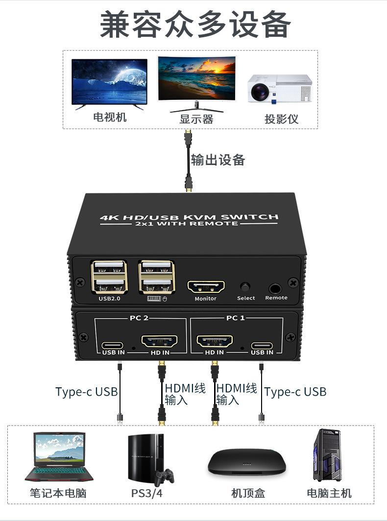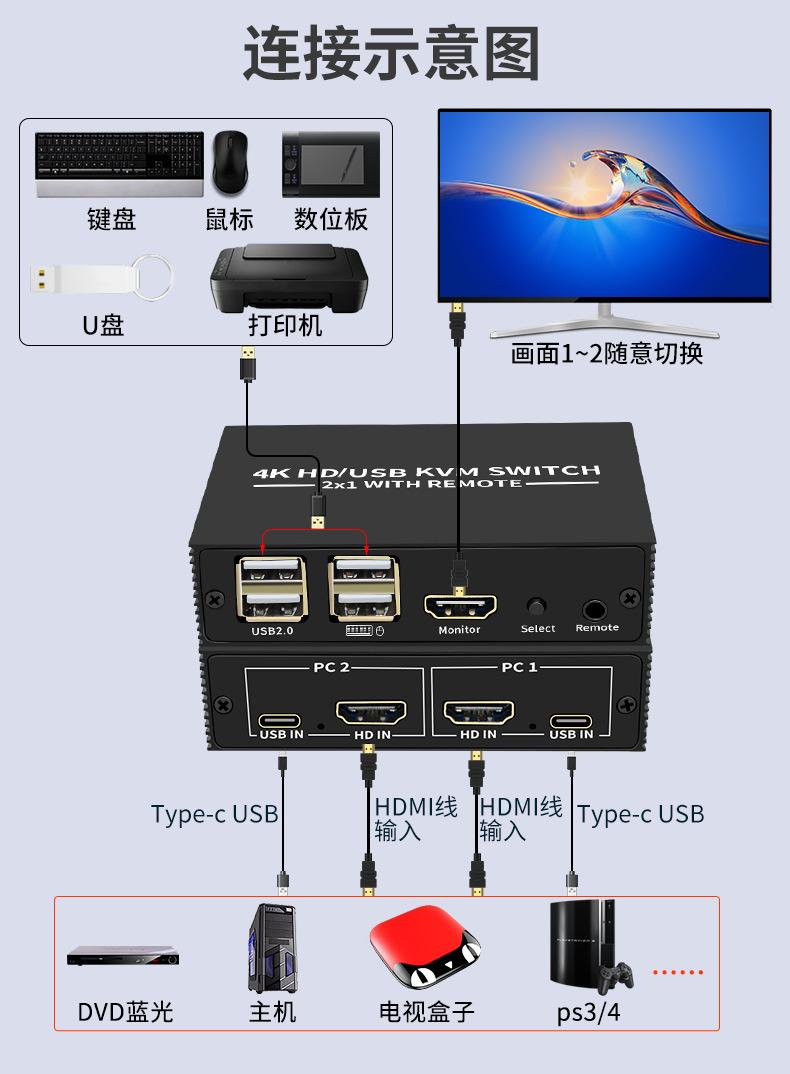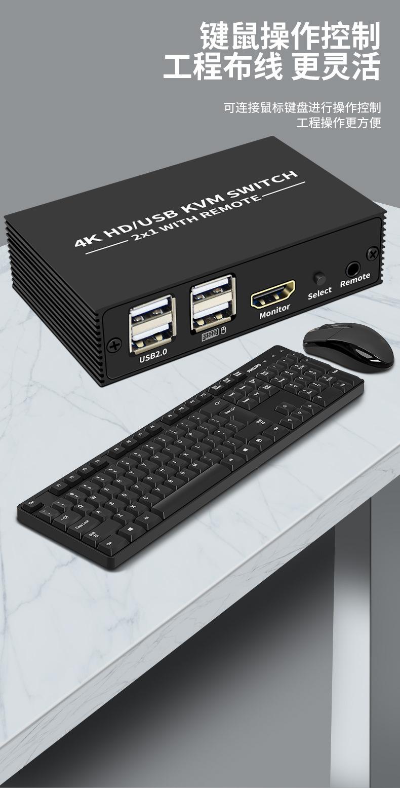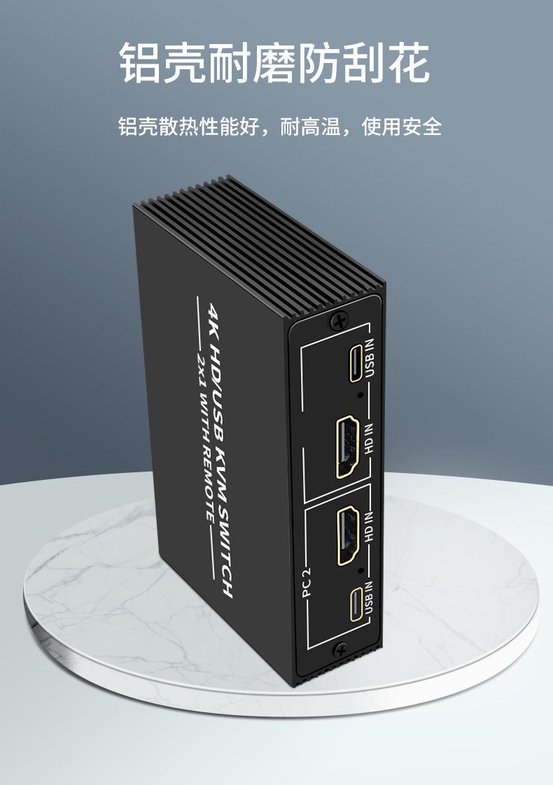 Conmutador KVM 4K, 2 puertos HDMI, 2 entradas, 1 salida, pantalla compartida, USB 2.0, impresora, compartidor de disco U