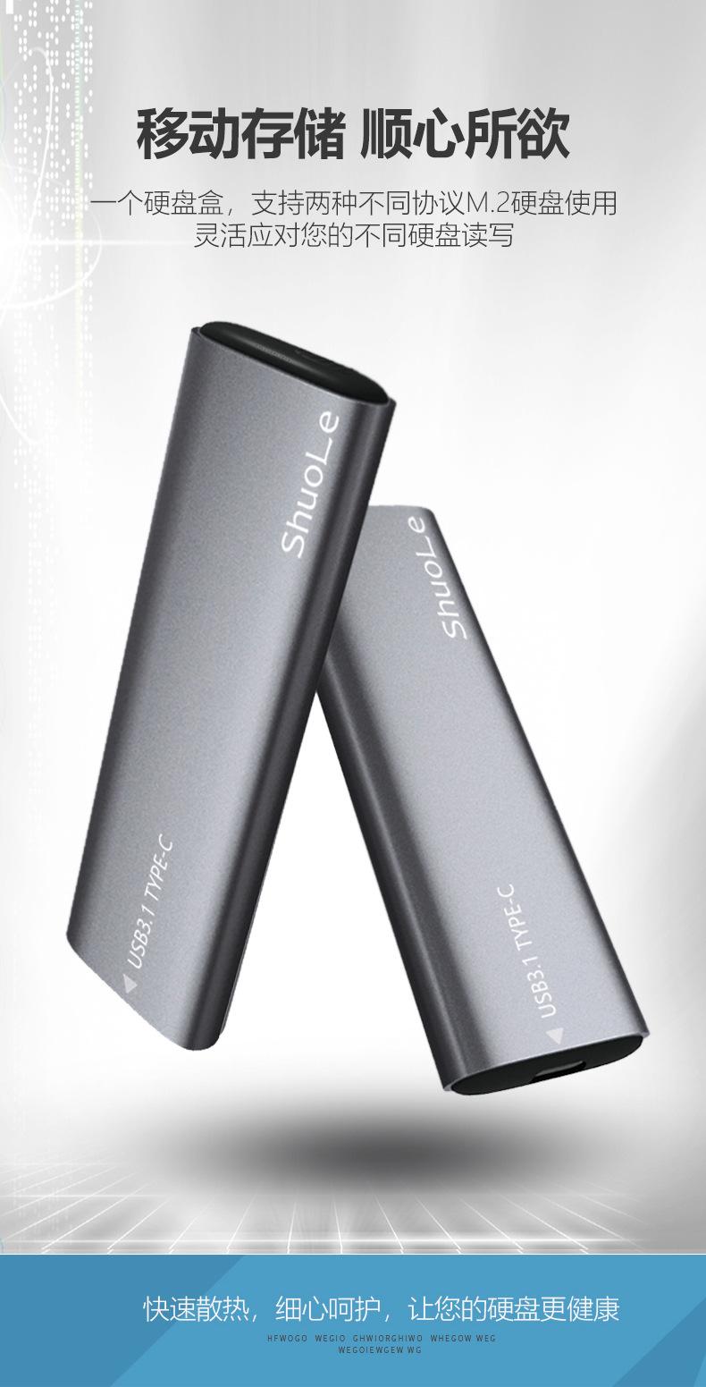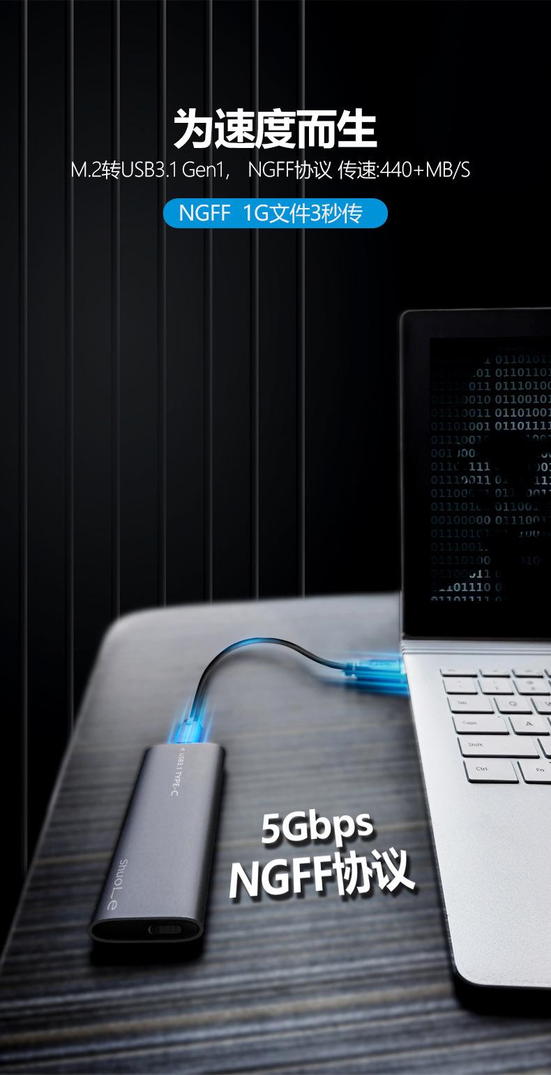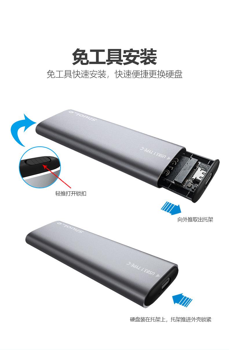 Caja para Disco Duro M.2 Usb3.1 Tipo-C a M.2Ngff Caja para Unidad de Estado Sólido Metal Externa Móvil Caja para Disco Duro