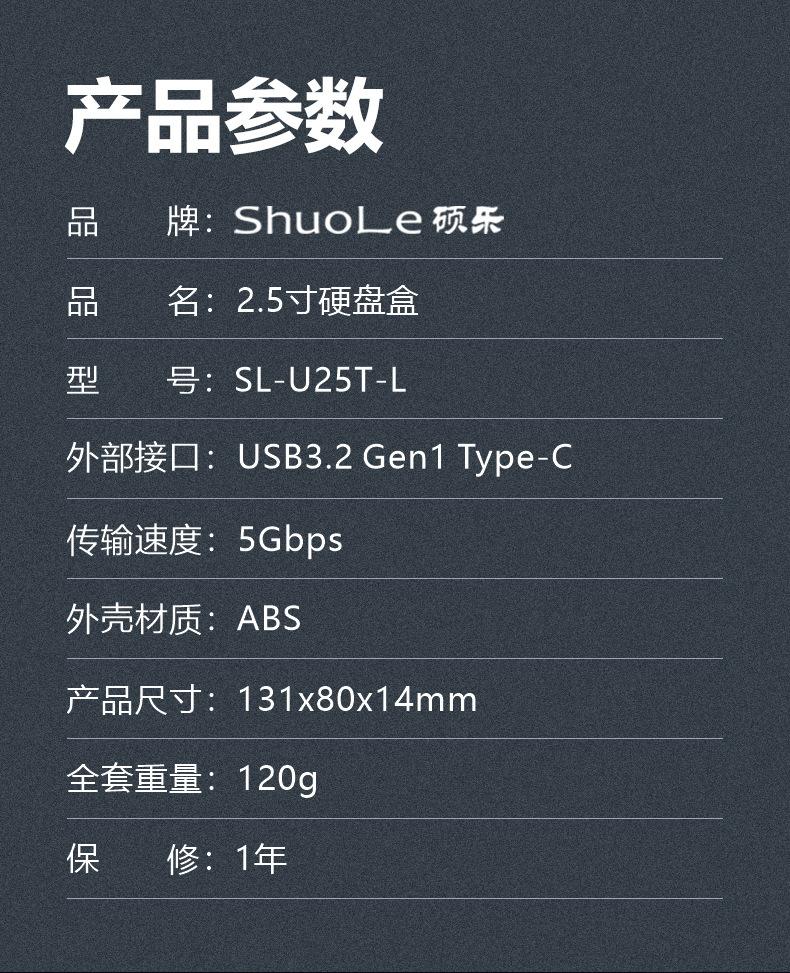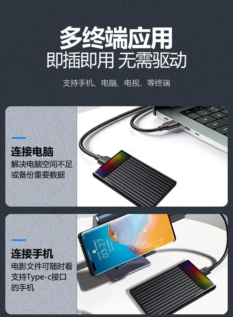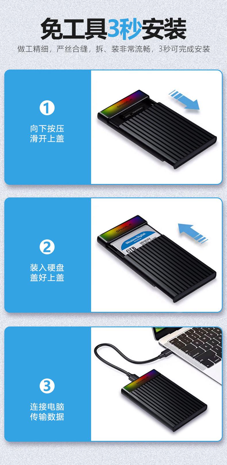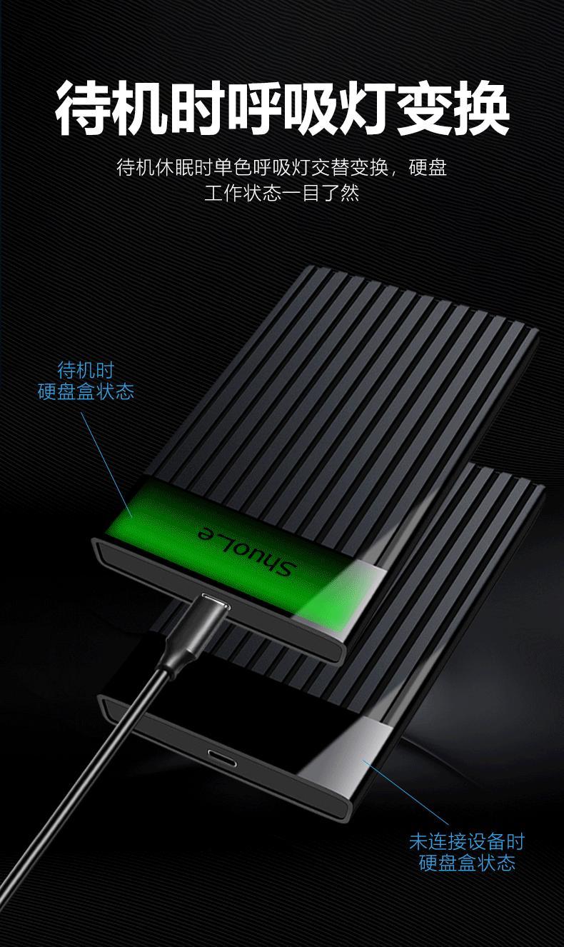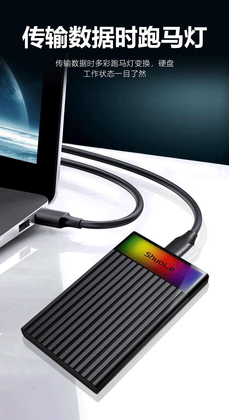 Caja para disco duro móvil Shuole tipo C color degradado de luz 2.5 pulgadas portátil externo sata puerto serie