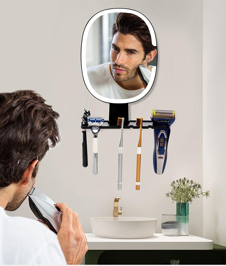 【Nombre del producto】: Espejo de afeitar con estante de almacenamiento