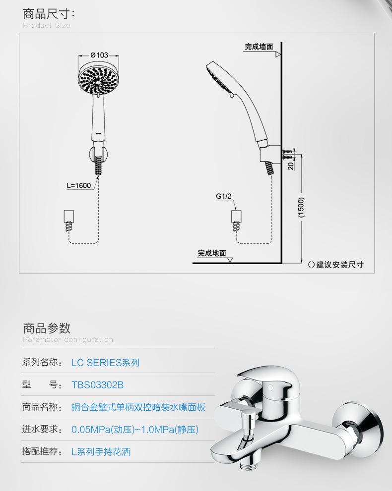 To.To Grifo de Ducha Montado en la Pared Tbs03302B Aleación de Cobre Caliente y Frío Doble Control Caño de Ducha Ducha Baño