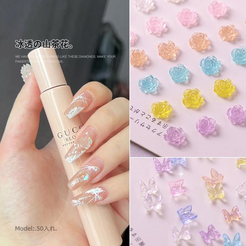50 camelia de hielo mixta flash fino mariposa primavera y verano fantasía arte de uñas diamante joyería para uñas resina pegatina diamante