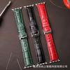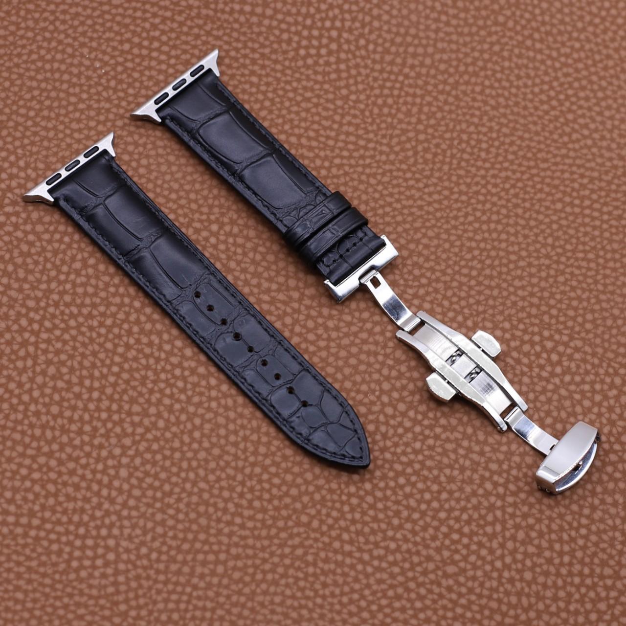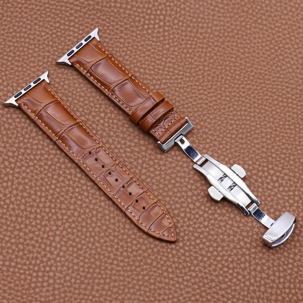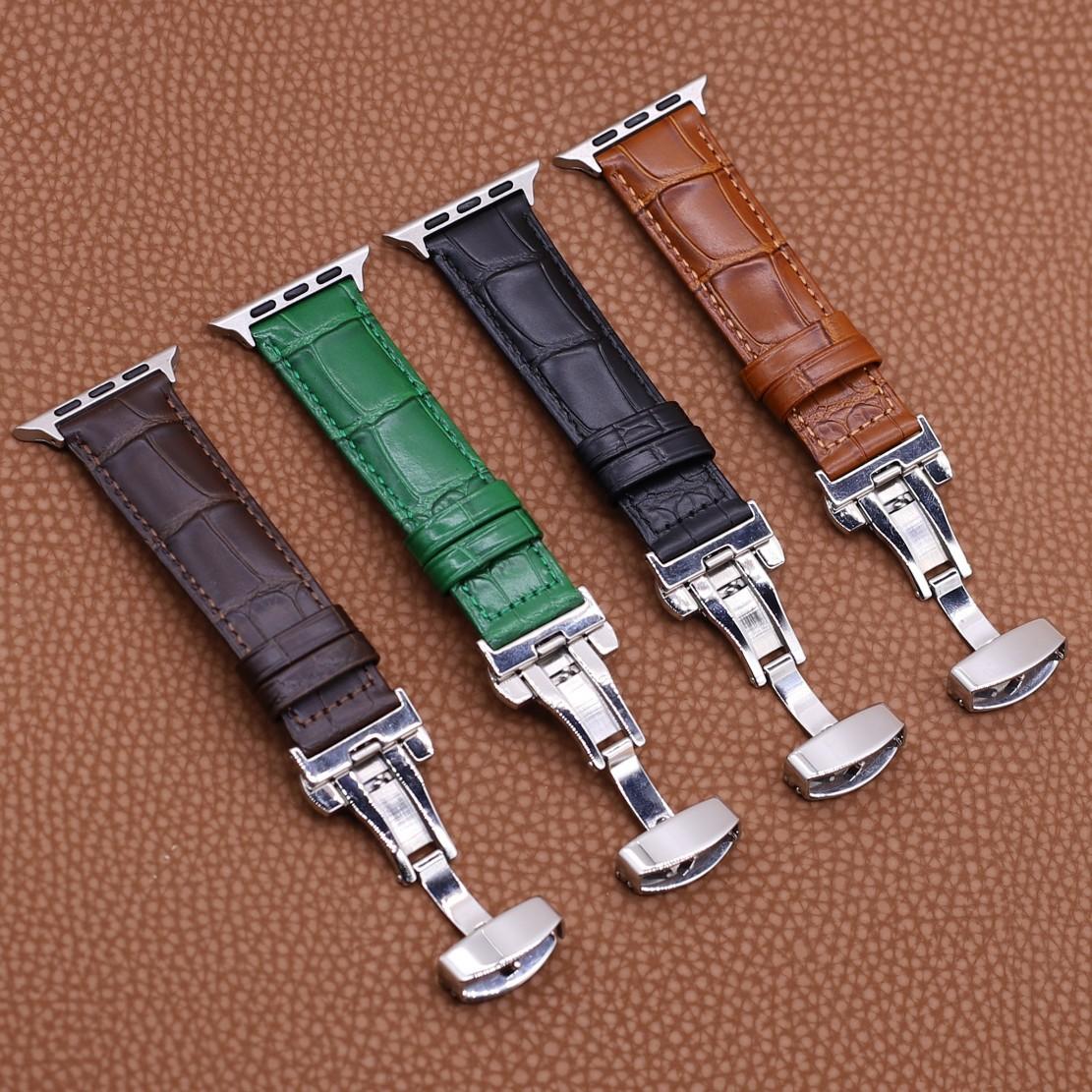 Adecuado para Correa de Apple Watch Applewatch 1-10 Generación Patrón Bambú Cuero Genuino Correa Hebilla Mariposa de Doble Presión