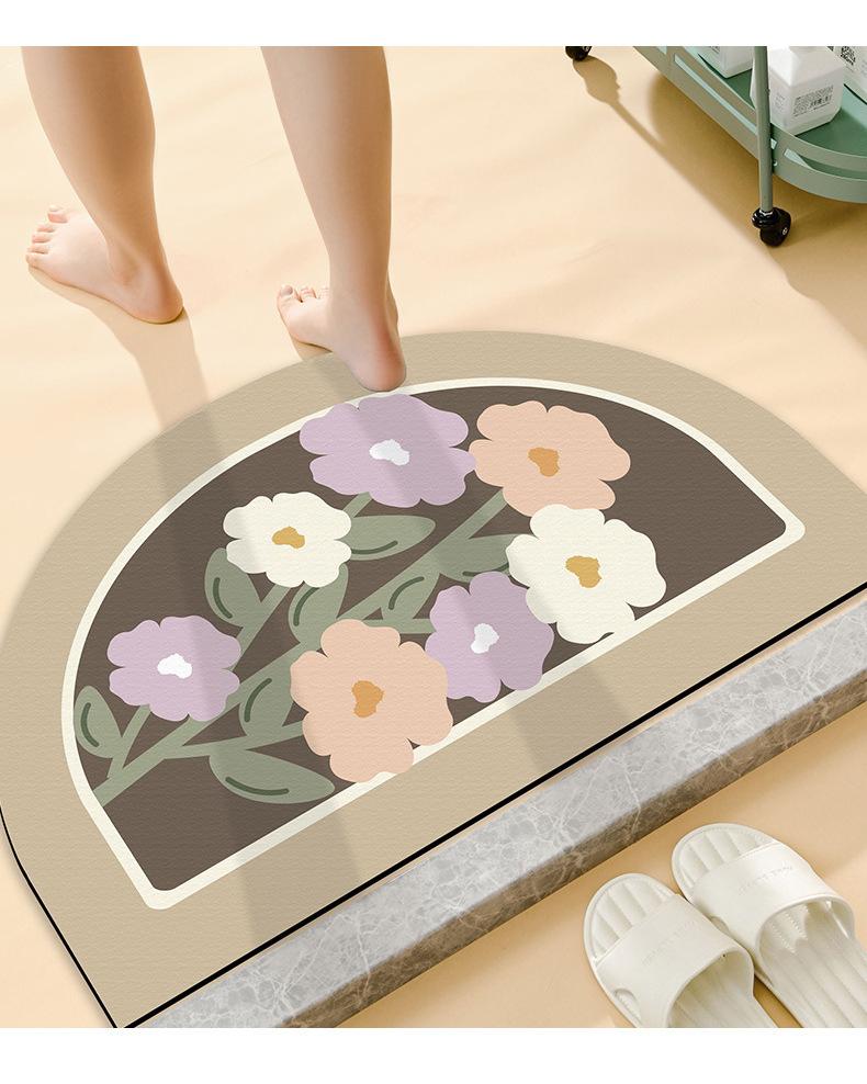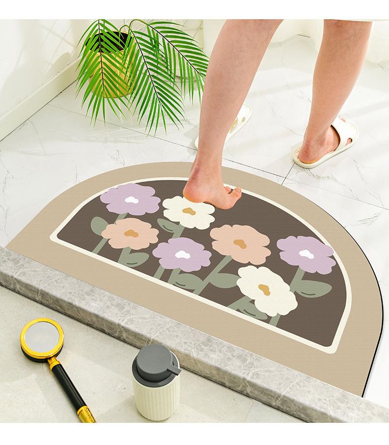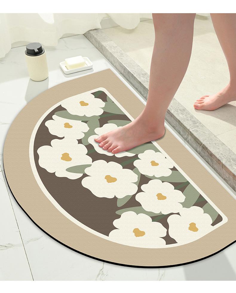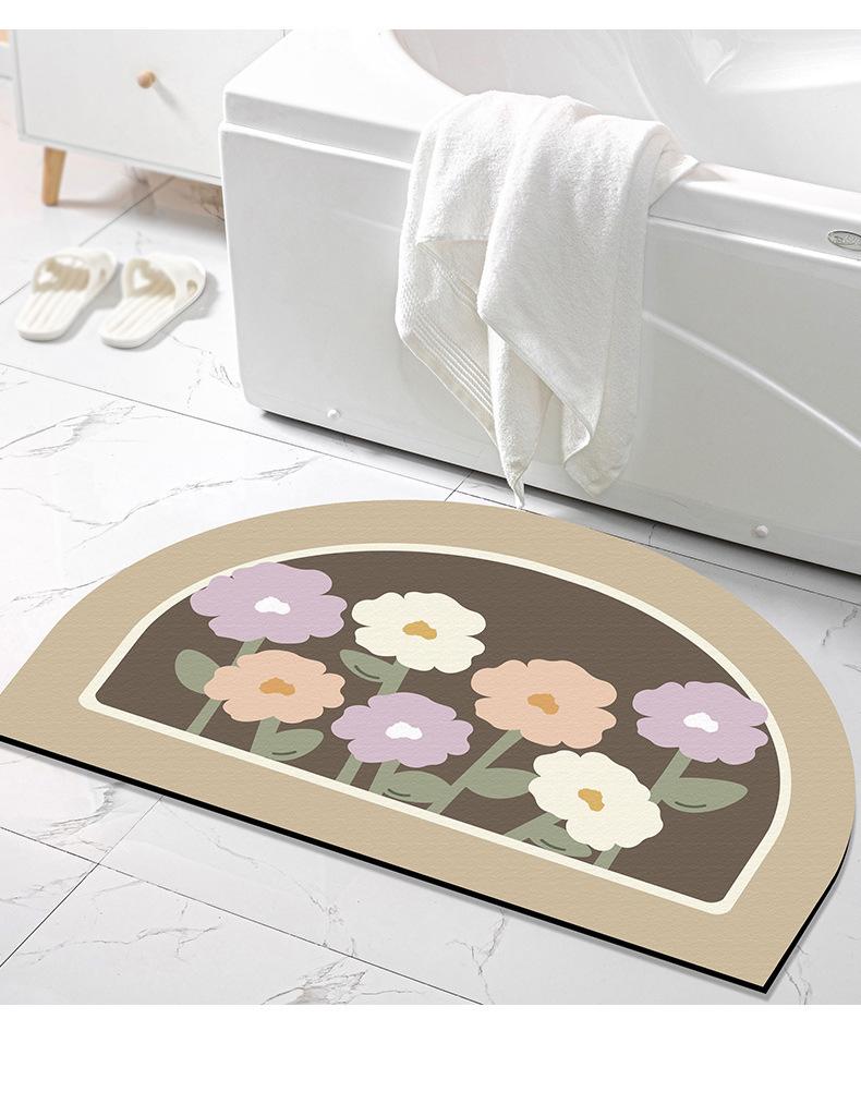 Tapete pequeño de flores frescas para puerta de inodoro, tapete absorbente de tierra de diatomeas para inodoro, de secado fácil, para el hogar, baño, tapete antideslizante