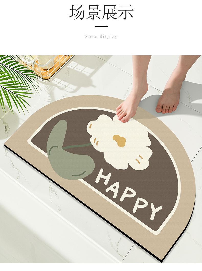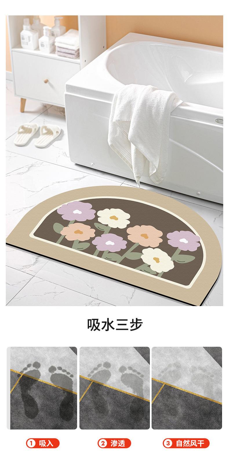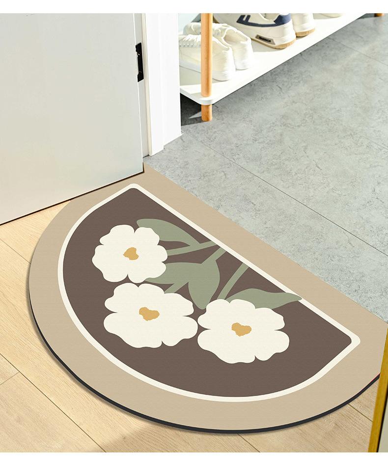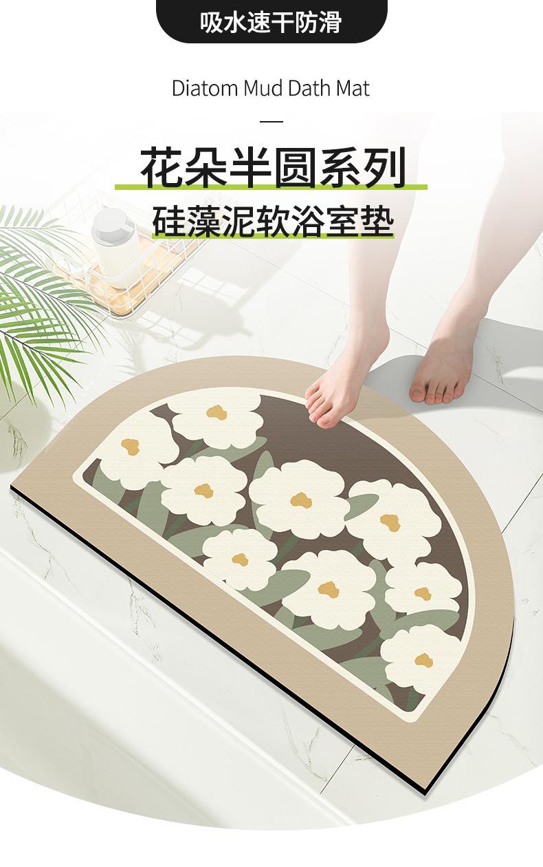 Tapete pequeño de flores frescas para puerta de inodoro, tapete absorbente de tierra de diatomeas para inodoro, de secado fácil, para el hogar, baño, tapete antideslizante