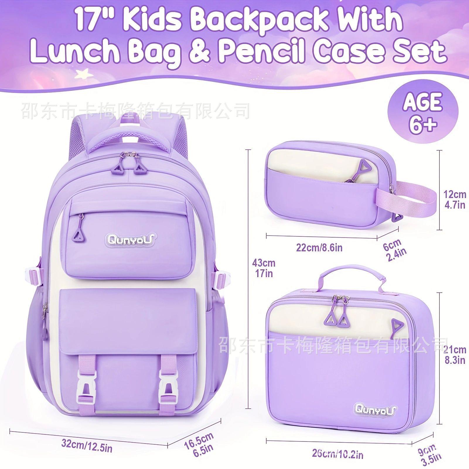 Mochila CPC Transfronteriza de 3 piezas para Estudiantes de Primaria Grado 1-3-6 Ultraligera Gran Capacidad Bolsa Escolar para Niña Bolsa para Alimentos Bolsa para Lápices