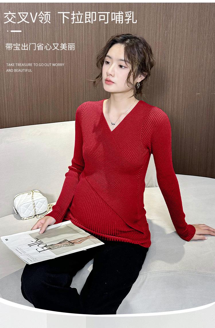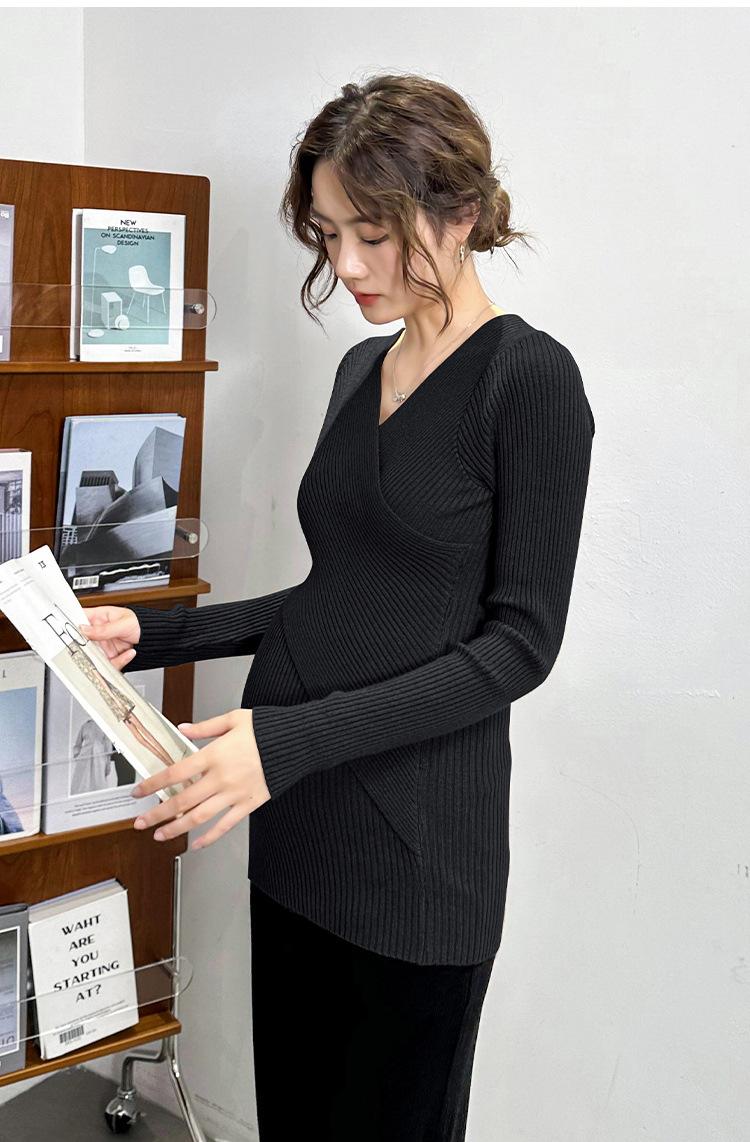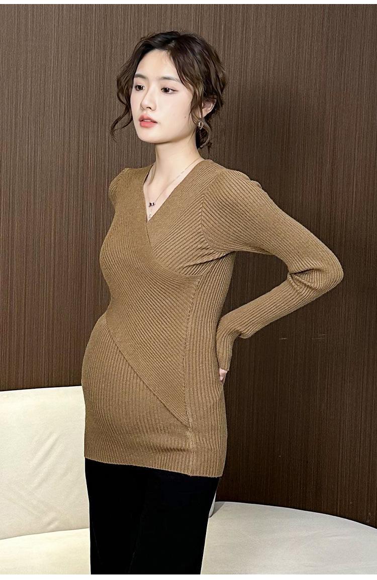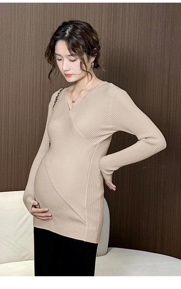 Ropa de Maternidad Otoño e Invierno Nuevo Suéter Camiseta Base con Lactancia Top de Punto Talla Grande Elástico Estilo Primavera y Otoño