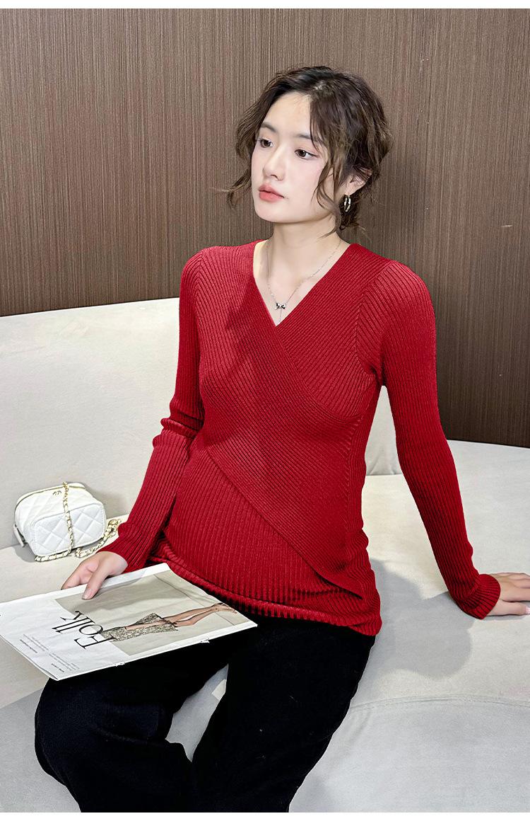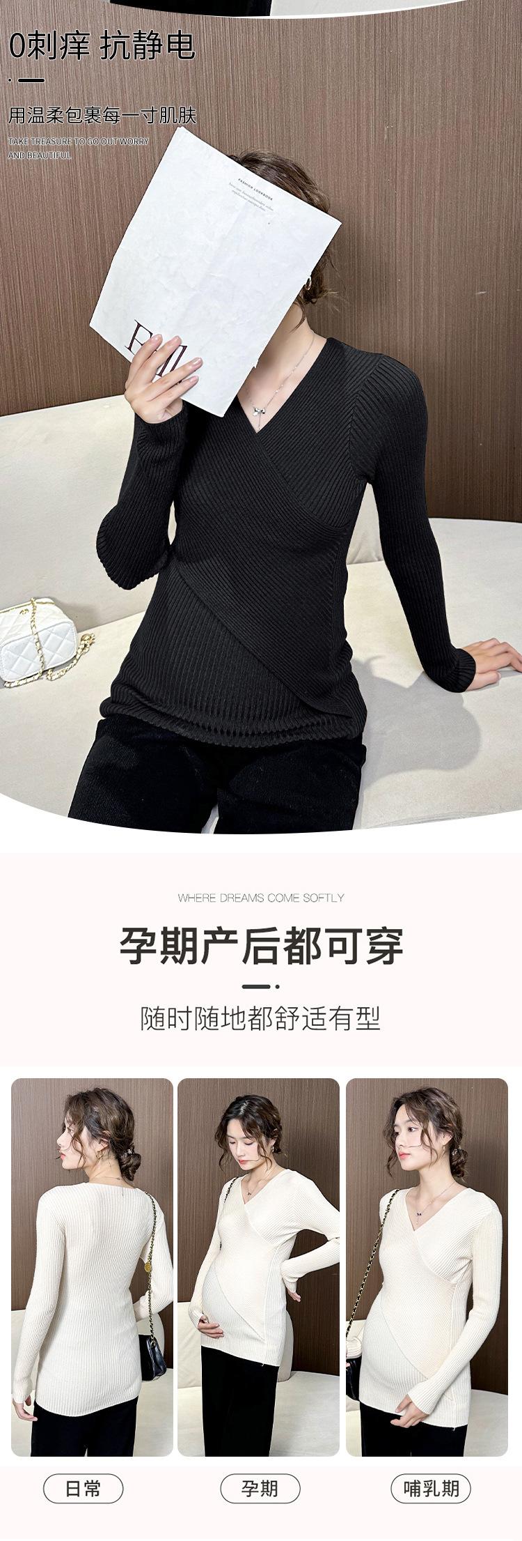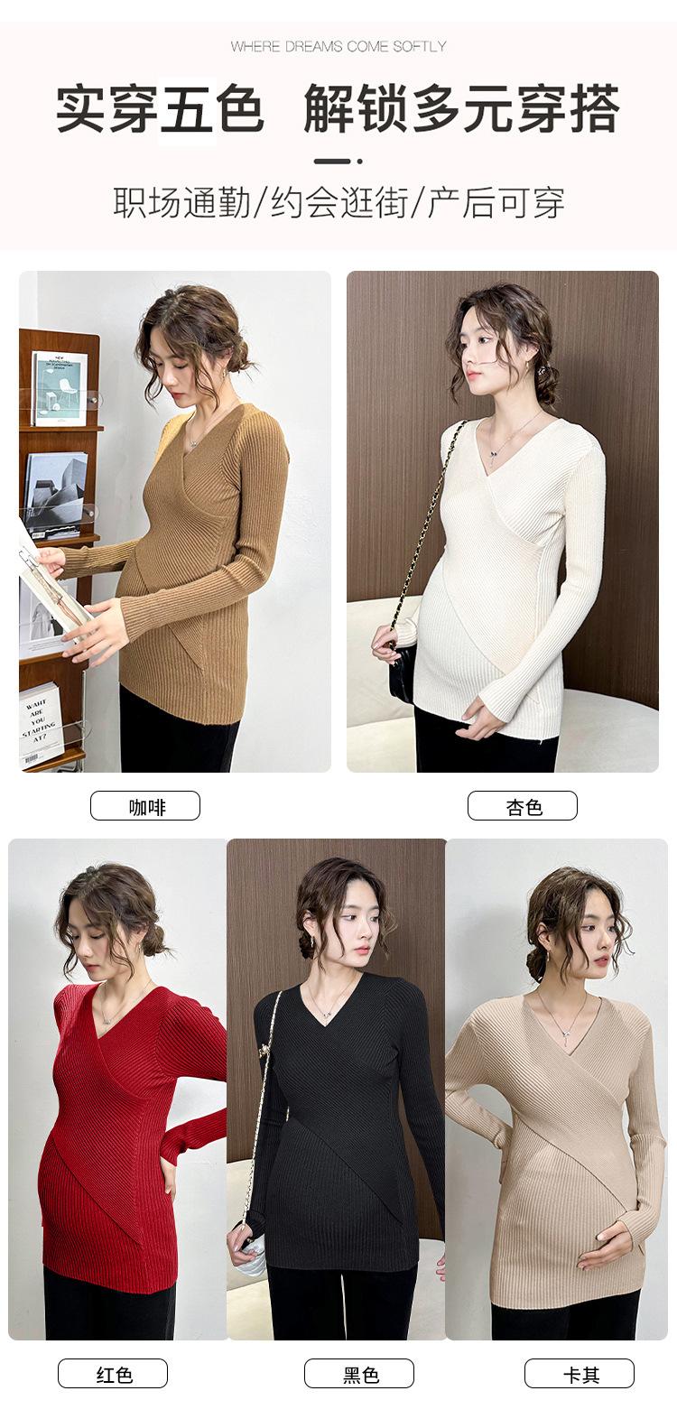 Ropa de Maternidad Otoño e Invierno Nuevo Suéter Camiseta Base con Lactancia Top de Punto Talla Grande Elástico Estilo Primavera y Otoño