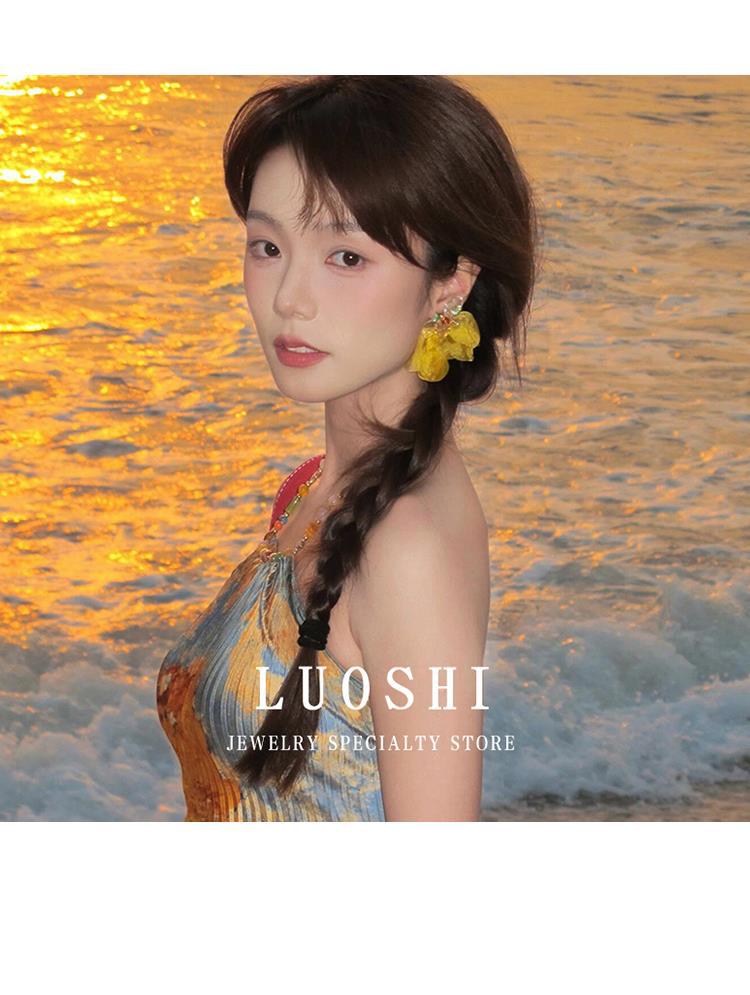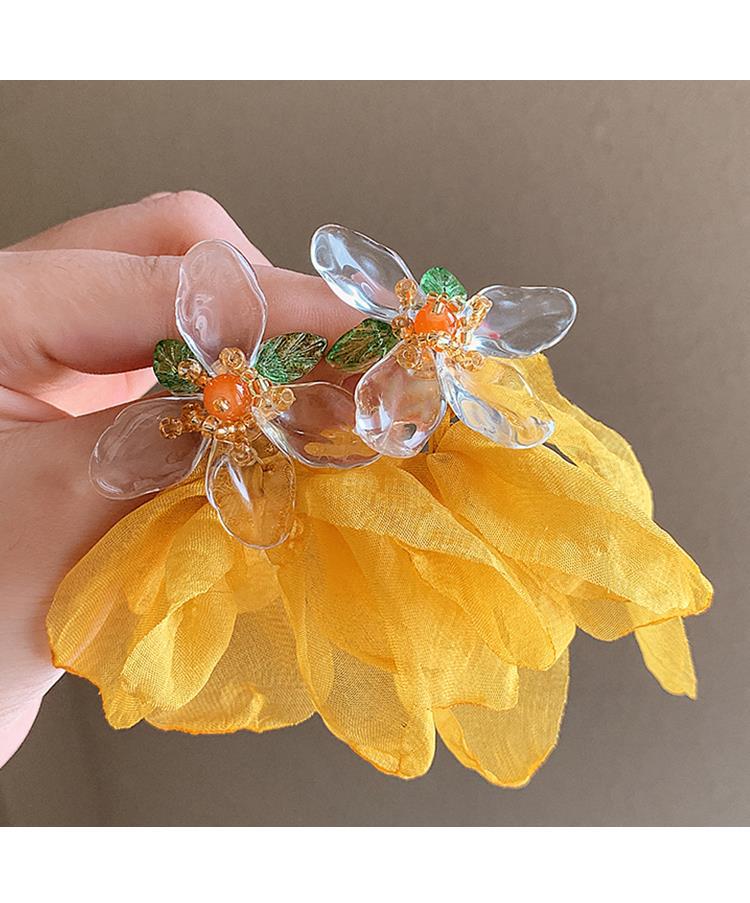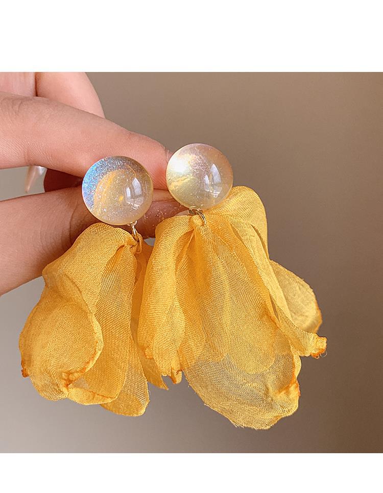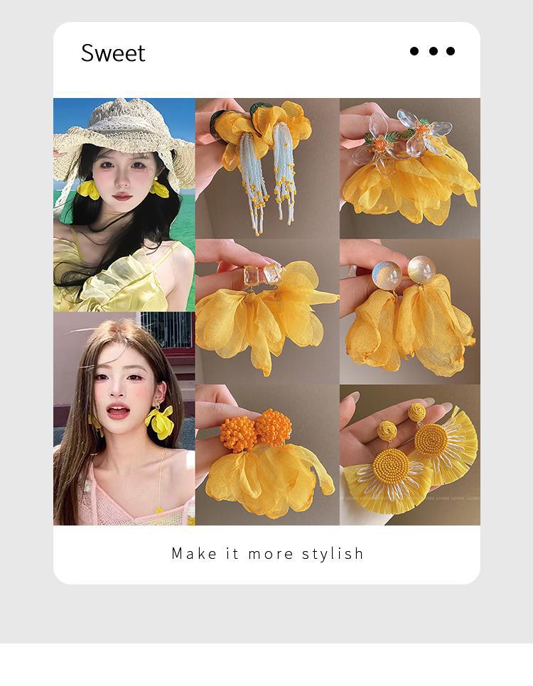 Main picture style luoying 6-piece set, Yellow chiffon earrings-, Yellow snowball flower stud earrings, Yellow...