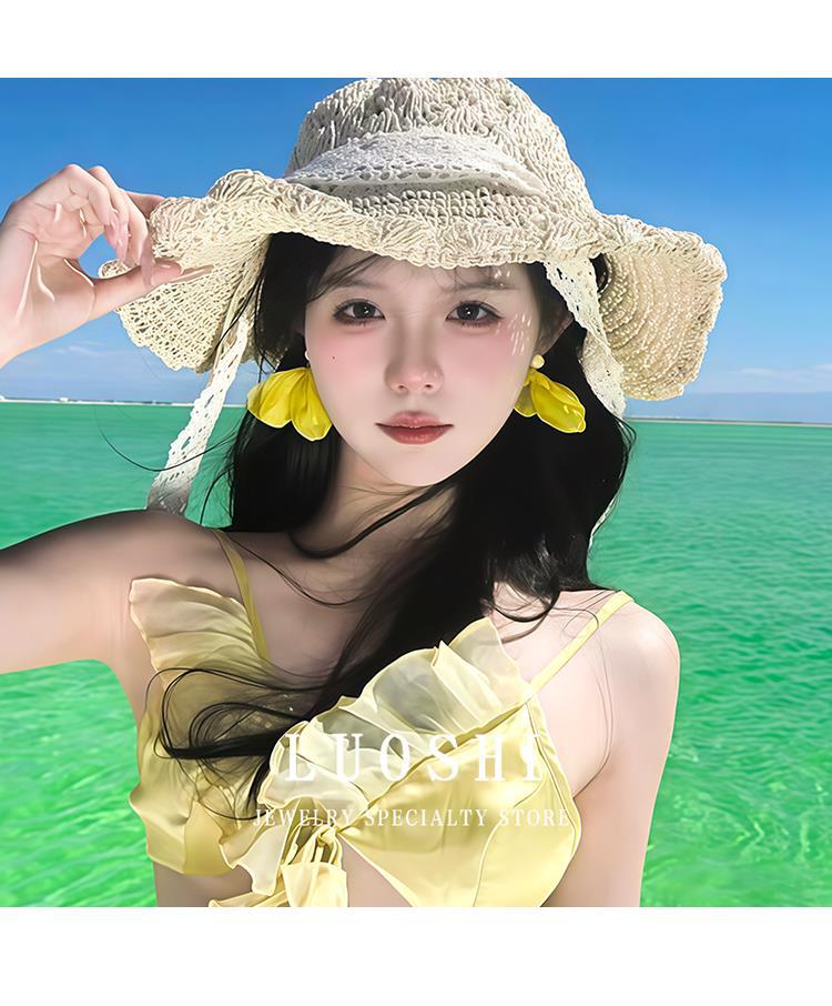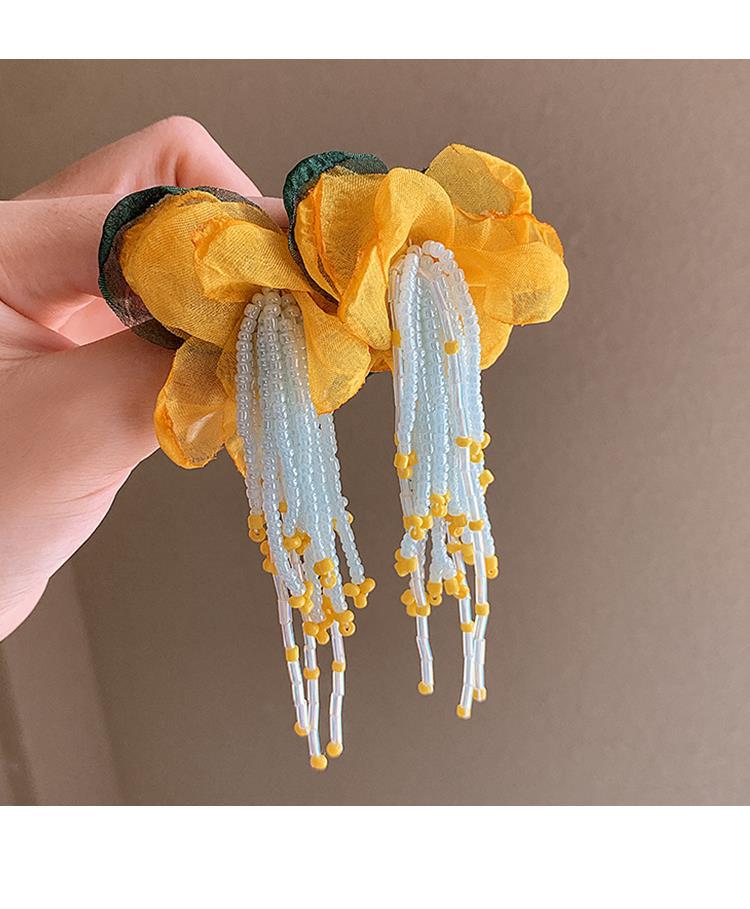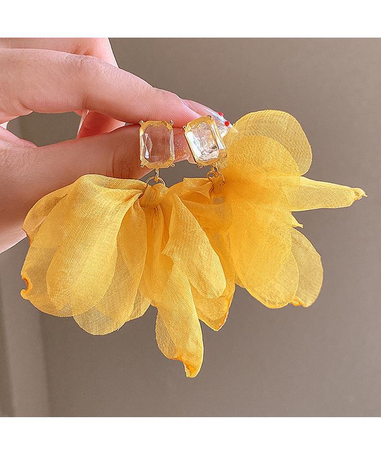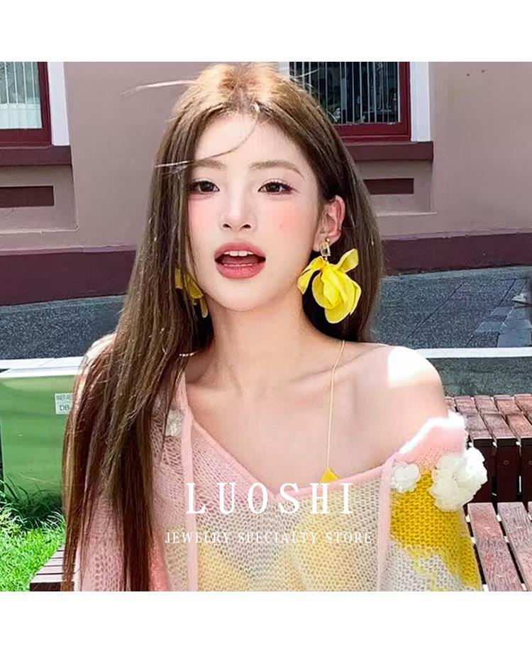 Aretes de Malla de Flores Amarillas Dopamina Estilo Vacacional para Mujer Aretes de Color Súper Hada 2025 Nueva Llegada Aretes de Atmósfera