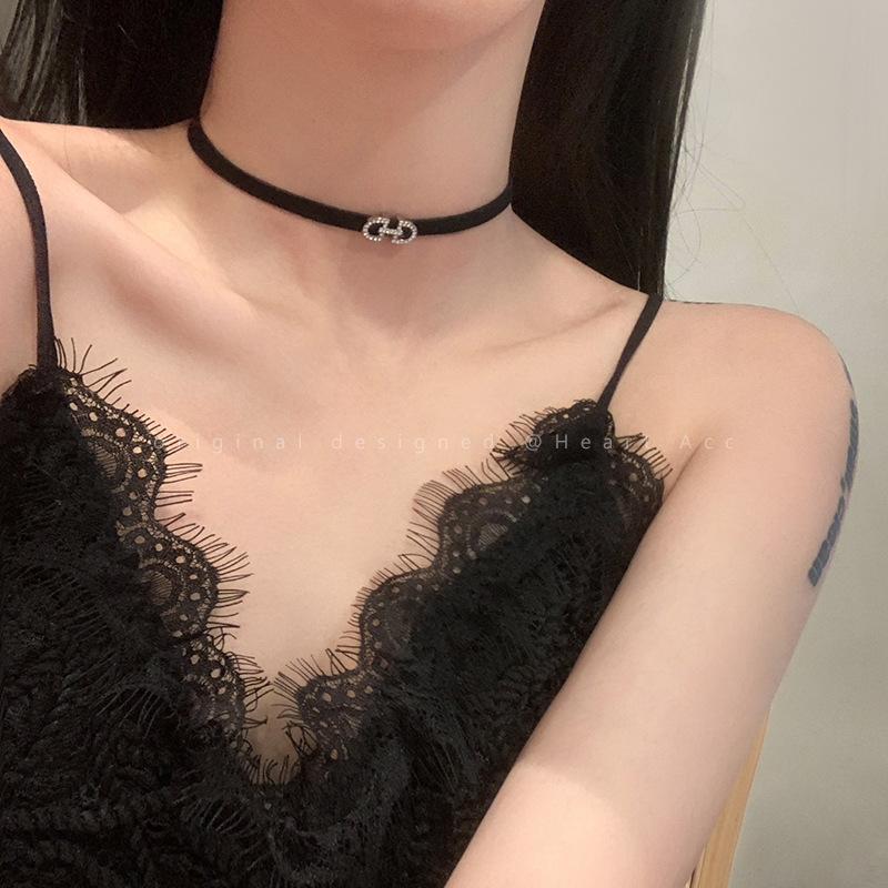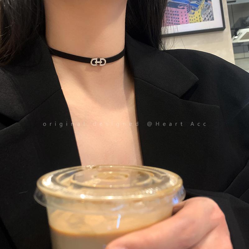 Collar de cuerda negra de nicho de lujo ligero para mujer, gargantilla de alta gama, cadena de clavícula, accesorios para el cuello, collar