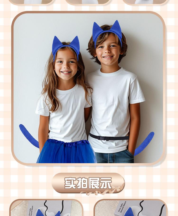 Diadema de animal de Halloween con orejas de gato azul para niños, bonita diadema para eventos de mascarada.
