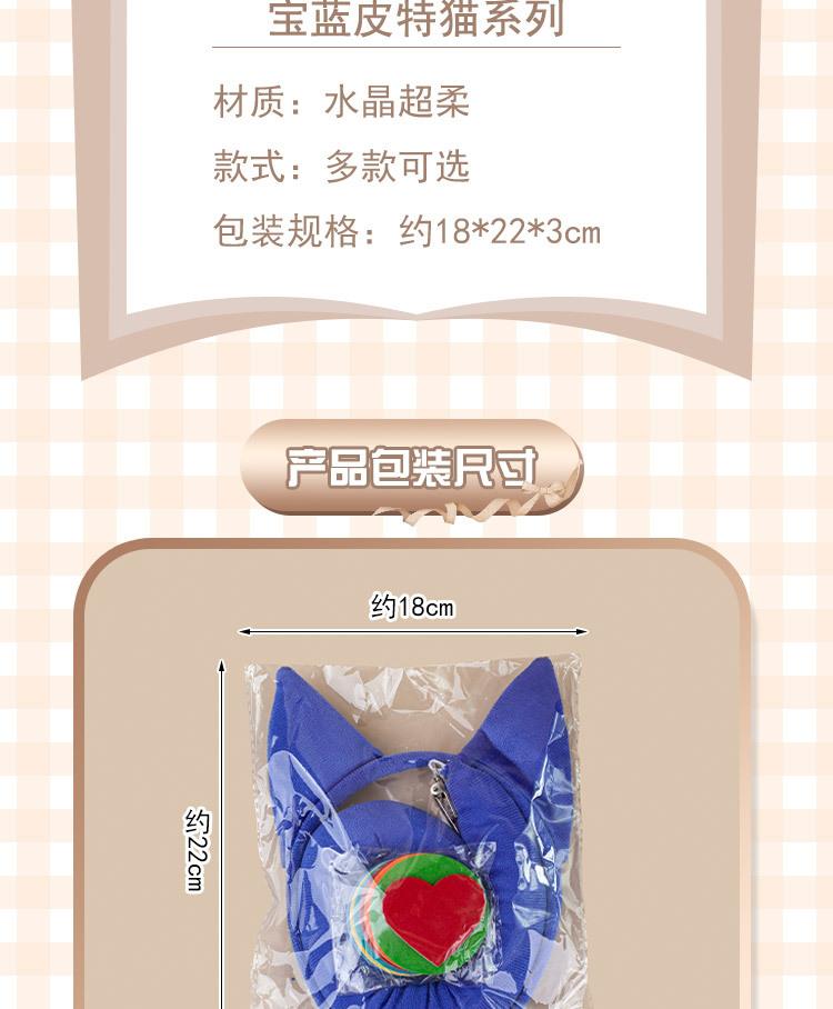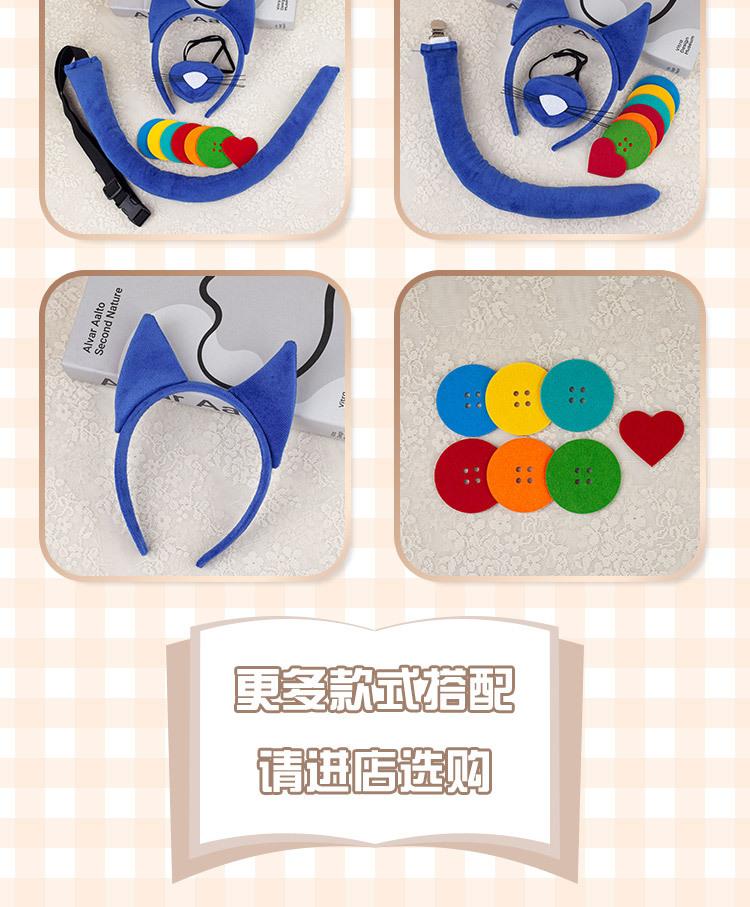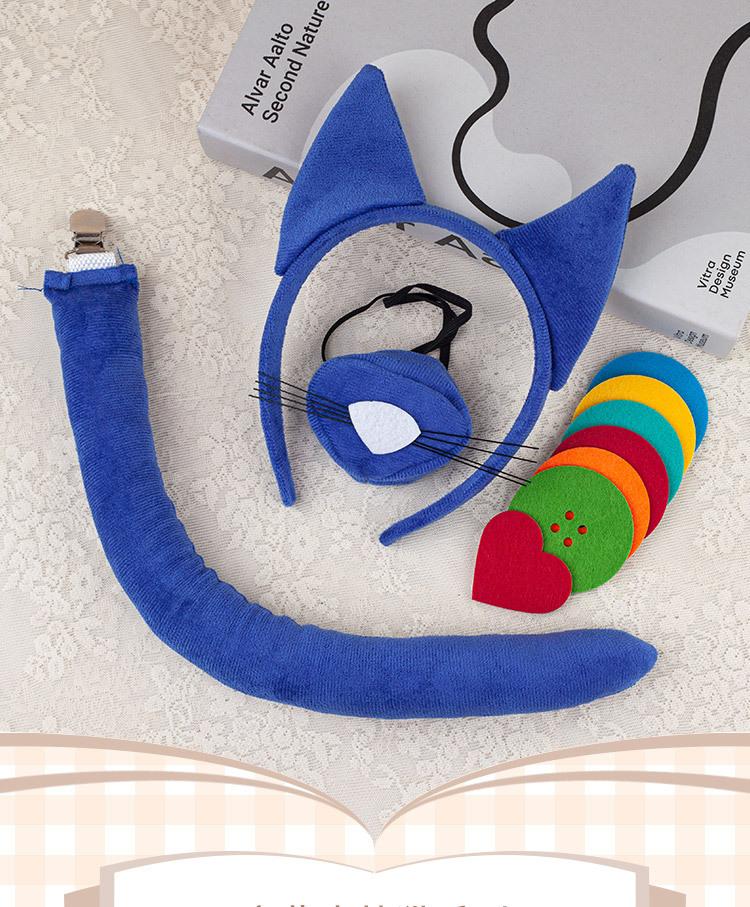 Love button stickers, Super Soft Pitt Cat Ears, Super Sapphire Pitt Cat 55cm with Buckle Tail, Super soft blue...
