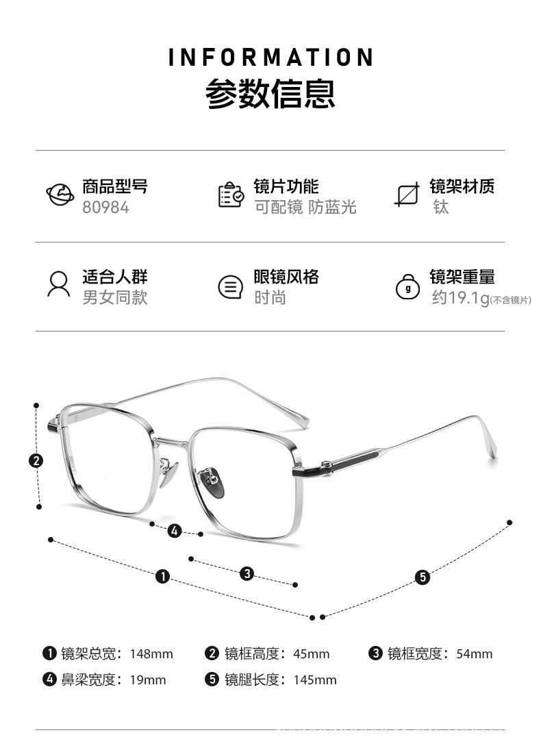 Danyang vende al por mayor nuevas gafas de miopía con montura de titanio ultraligeras para hombre, caja de luz anti-azul, lado ancho 80984, ojos de moda